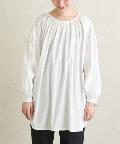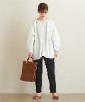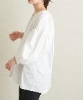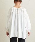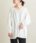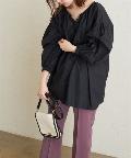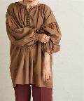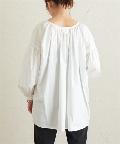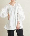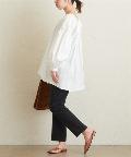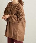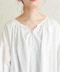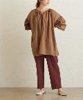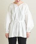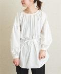くるみ釦がいっぱいデザインがちょっぴりチャイナな気分のブラウス。デザイン性がありながらも、身頃は華美になりすぎないシンプルなフォルムで、インにもアウトにもしやすい程よいチュニック丈です。そして暑い時期には袖を短く着用できるよう、袖口にゴムを入れ、ウエストリボンでシルエットの変化をお楽しみいただけます。快適な着心地を叶えてくれる綿100%素材で季節の変わり目にも重宝します。いつものコーデにに合わせるだけで今年らしい印象になるマストトレンドアイテム。キレイめからカジュアルまで幅広く着まわせるワードローブに加えたいひと品です。