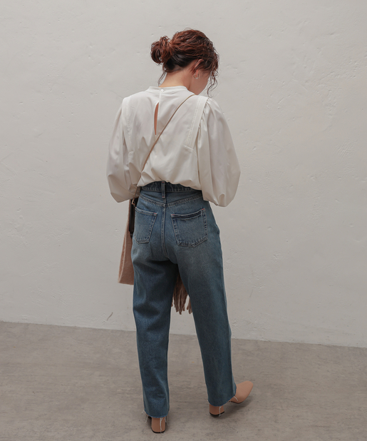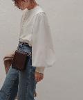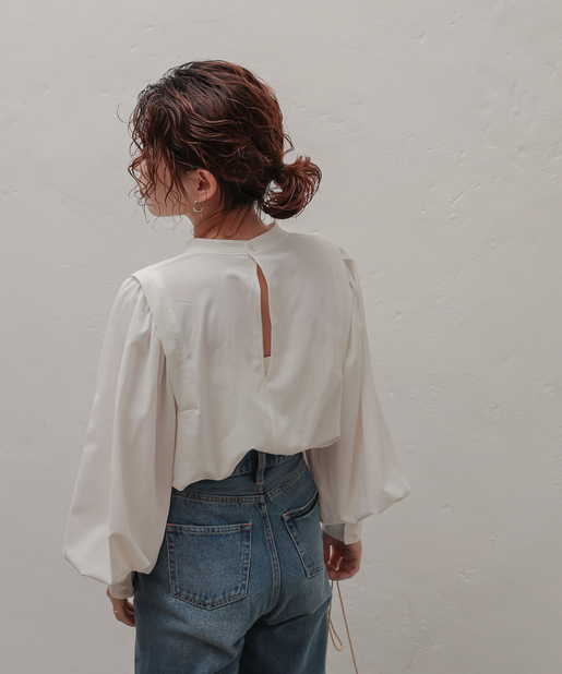 ステッチカラーが新鮮なボリュームスリーブブラウス