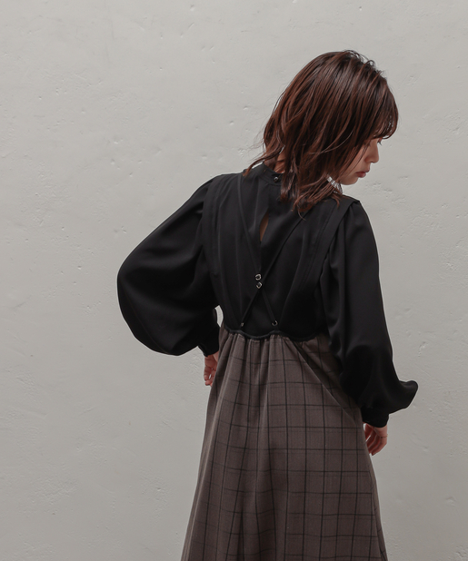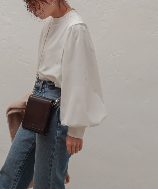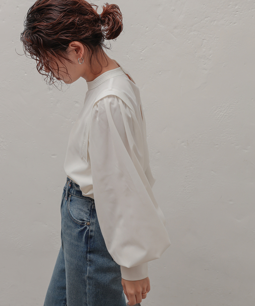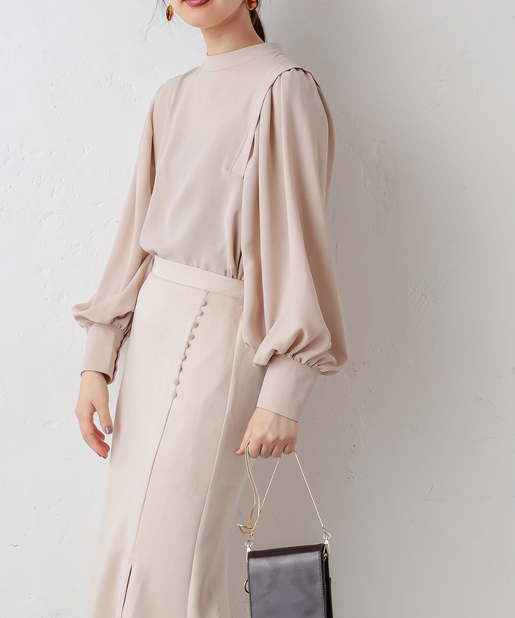 【大人ナチュ】【WEB限定】ボリュームスリーブステッチカラーブラウス