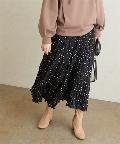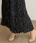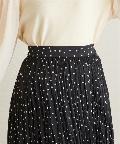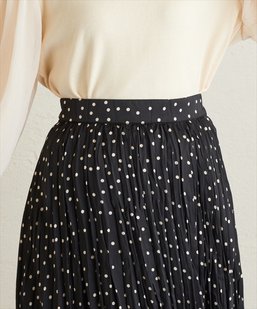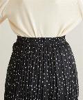 サテンのつやっとした生地感が高級感を演出しオシャレ見えのクリンクルサテンドットスカート