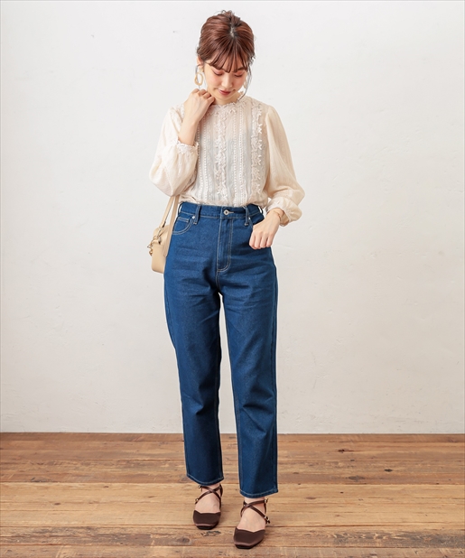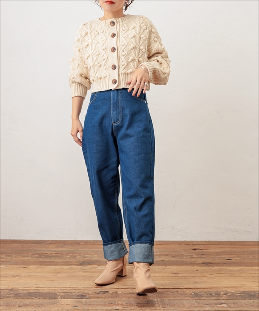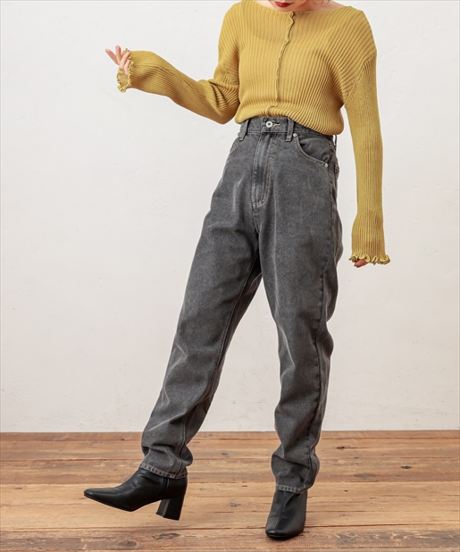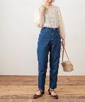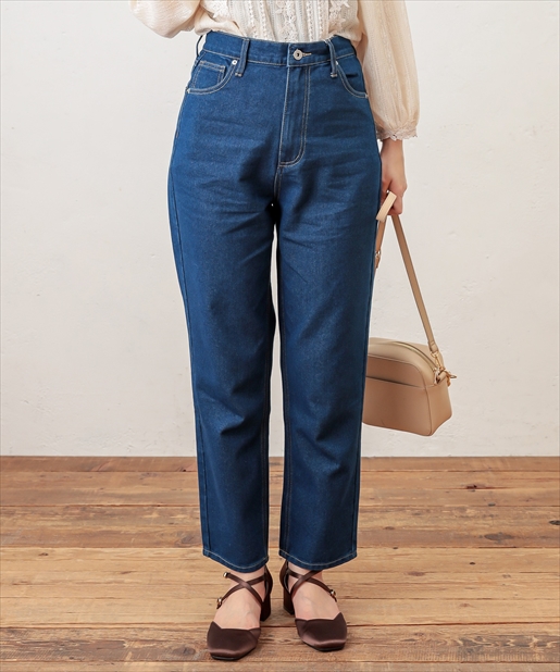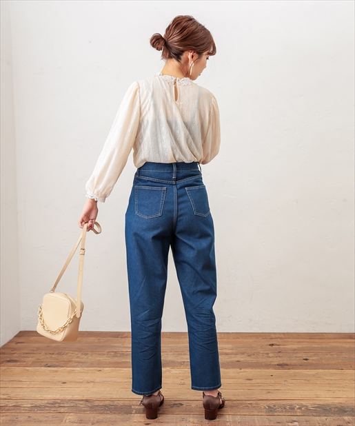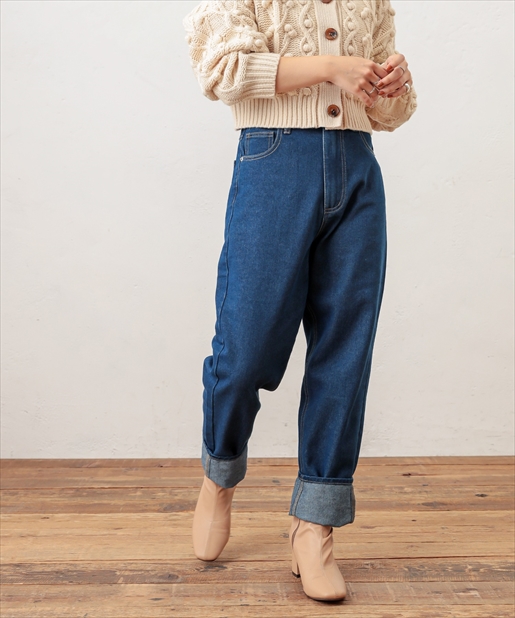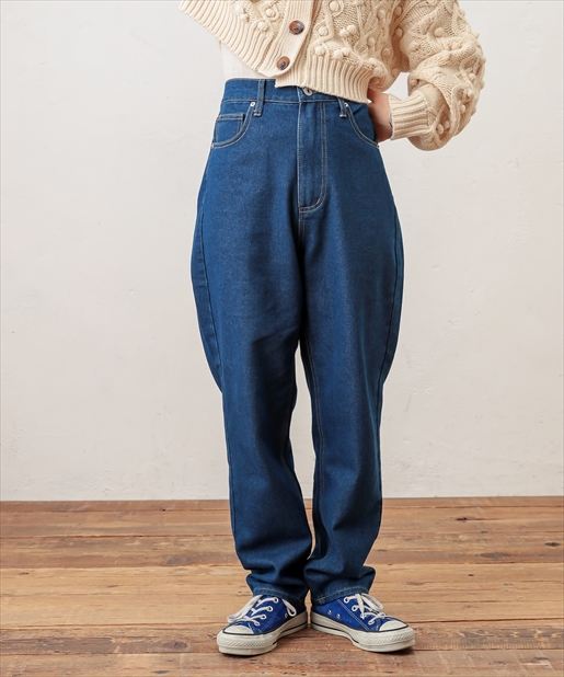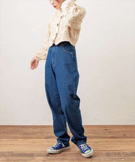 着回しには欠かせないデニムパンツがメンズライクなちょっぴり太めのデザインで登場しました。太ももの幅を太め、すそ周りを細く仕立てた形はただ野暮ったいだけでなく、気になる部分は隠して足首はすっきりと細見えするお役立ちアイテムです!ゆったりとしたシルエットを活かし、ミニマムなトップスと合わせたバランスの良いスタイリングやチュニックなどのゆとりのあるトップスをウエストマークしてレイヤードしたリラックススタイルもオススメです。ベーシックなカラーのネイビー・ブラックに加えケミカルウォッシュのこなれ感抜群のブルーをご用意しました。シーズンレスに楽しめるデニムを是非お楽しみ下さい。
