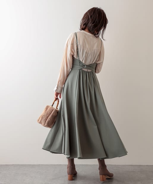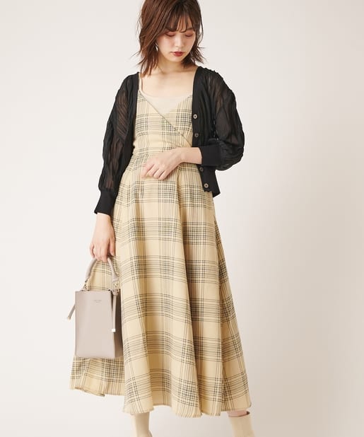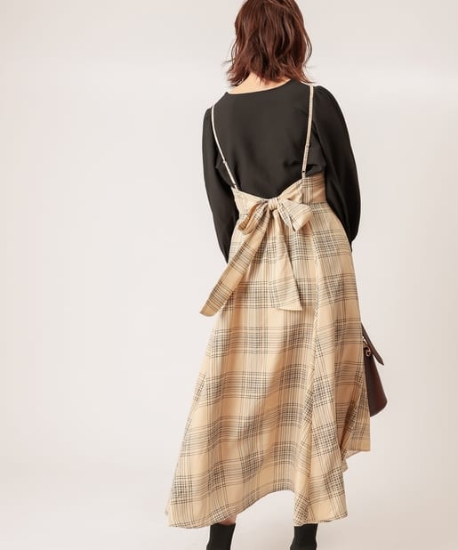 落ち感がありシルエットが綺麗なので1枚で決まるキャミソールワンピース。スカート部分は歩く度に揺れる上品なフレアで、着痩せ&体型カバーを叶える嬉しいシルエット。バックの大きめリボンがポイントになり後ろ姿も抜かりなし!着丈の調節も楽々できます。キャミ型なので、今年らしくシアートップスや無地のTシャツ合わせや、肌寒くなる季節にはカーディガンを合わせていただくのもおすすめスタイリング。1枚で今年らしい印象に仕上がるアイテムはワードローブに取り入れたいアイテムです。お色はブラック、ブラウン、チェックに加えWEB限定でモカをご用意しました。