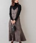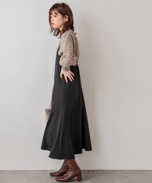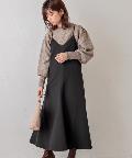 裾にかけてのゆるやかなマーメイドラインが女性らしさを演出し、身体のラインをすっきり見せてくれる大人レディな一着。