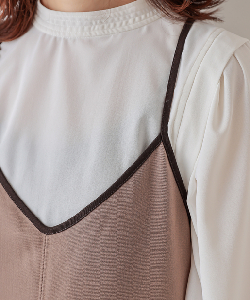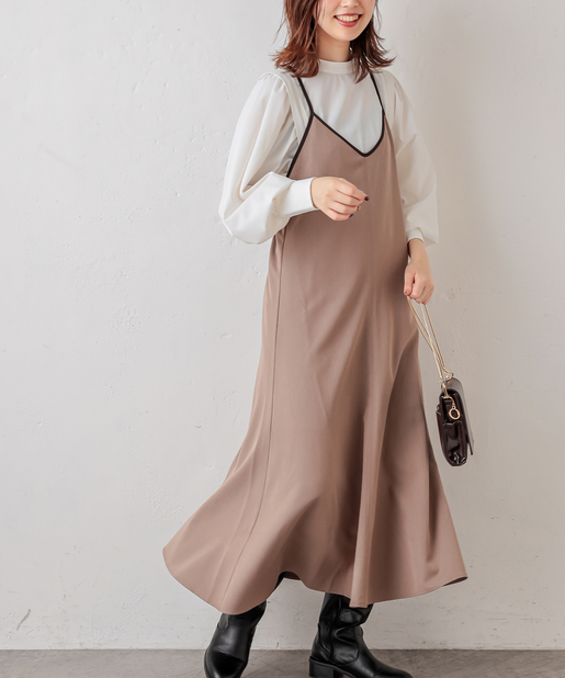 今季トレンドのキャミワンピースに、パイピングデザインを施したアイテム。