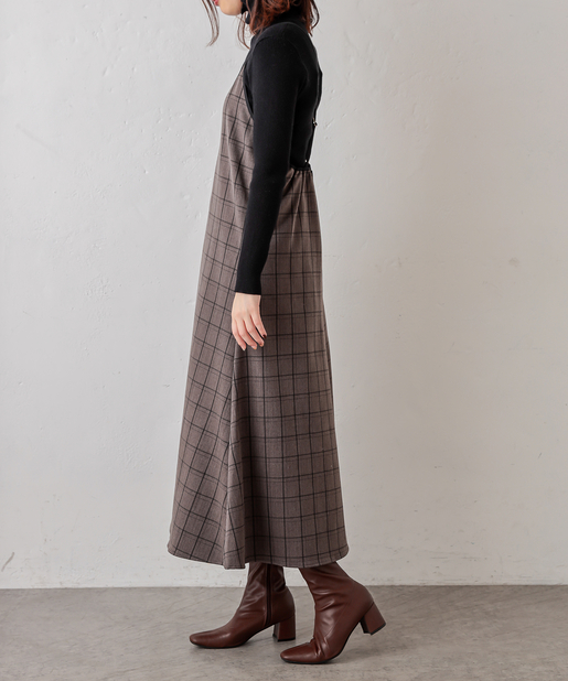 また、肩ヒモはバッククロスにすることも出来、後ろ姿まで抜かりなく!アジャスターで着丈の調節もラクラクです。