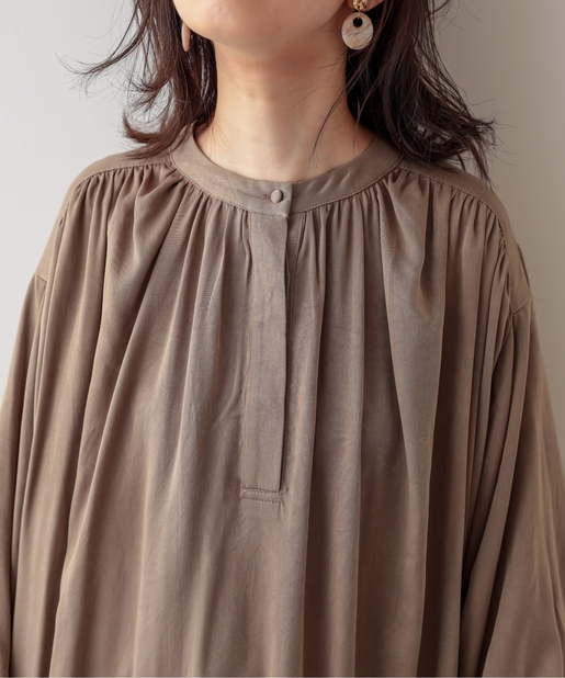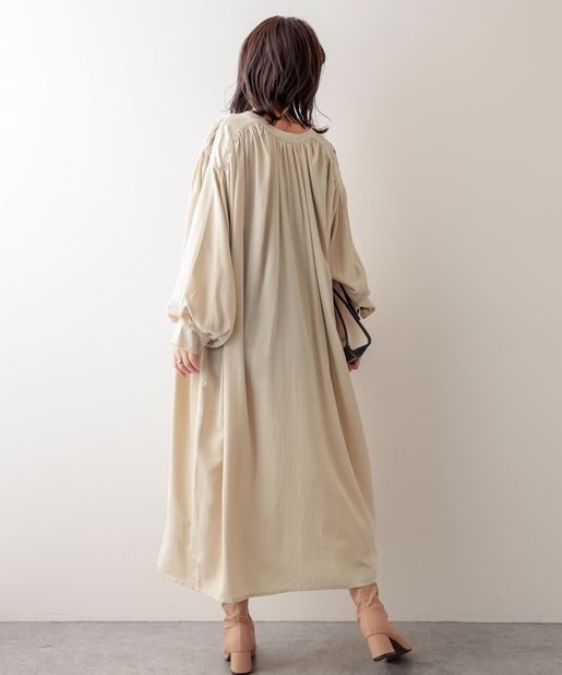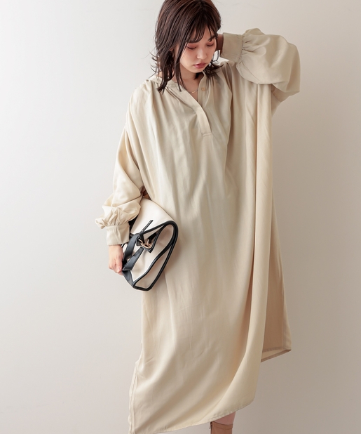 全体的にボリューム感があり、ふんわりとしたデザインがポイントのワンピース。バルーンスリーブはそのままではもちろん、たくしあげて手首を覗かせる事で女性らしさを演出できます。大人向けに甘さを抑えたヘルシーな印象であり、更には前後2wayでご着用が可能です。パンプスやフラットシューズで清楚に、ショートブーツで季節感を、デニムやニットベストを重ねてカジュアルに、、、アイテム次第でお洒落が楽しくなるワンピとなっております。合わせやすい定番カラー3色のご用意です。