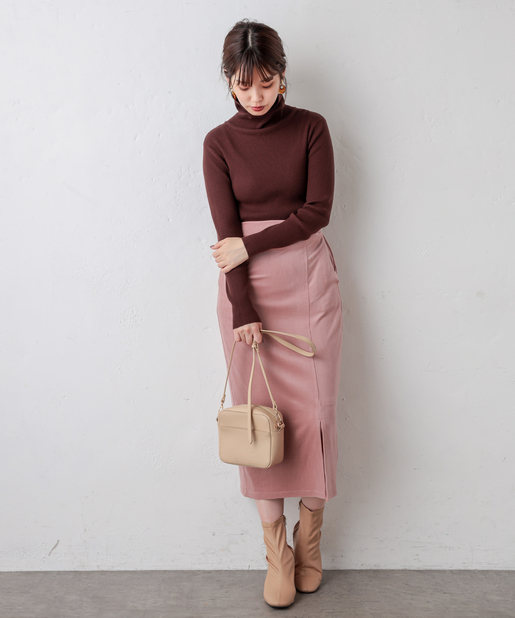 リブニットやコンパクトめなキレイめトップスや、オーバーサイズのシャツやスウェットといったボリュームのあるトップスとも好相性の、秋冬コーデに欠かせないアイテムです。