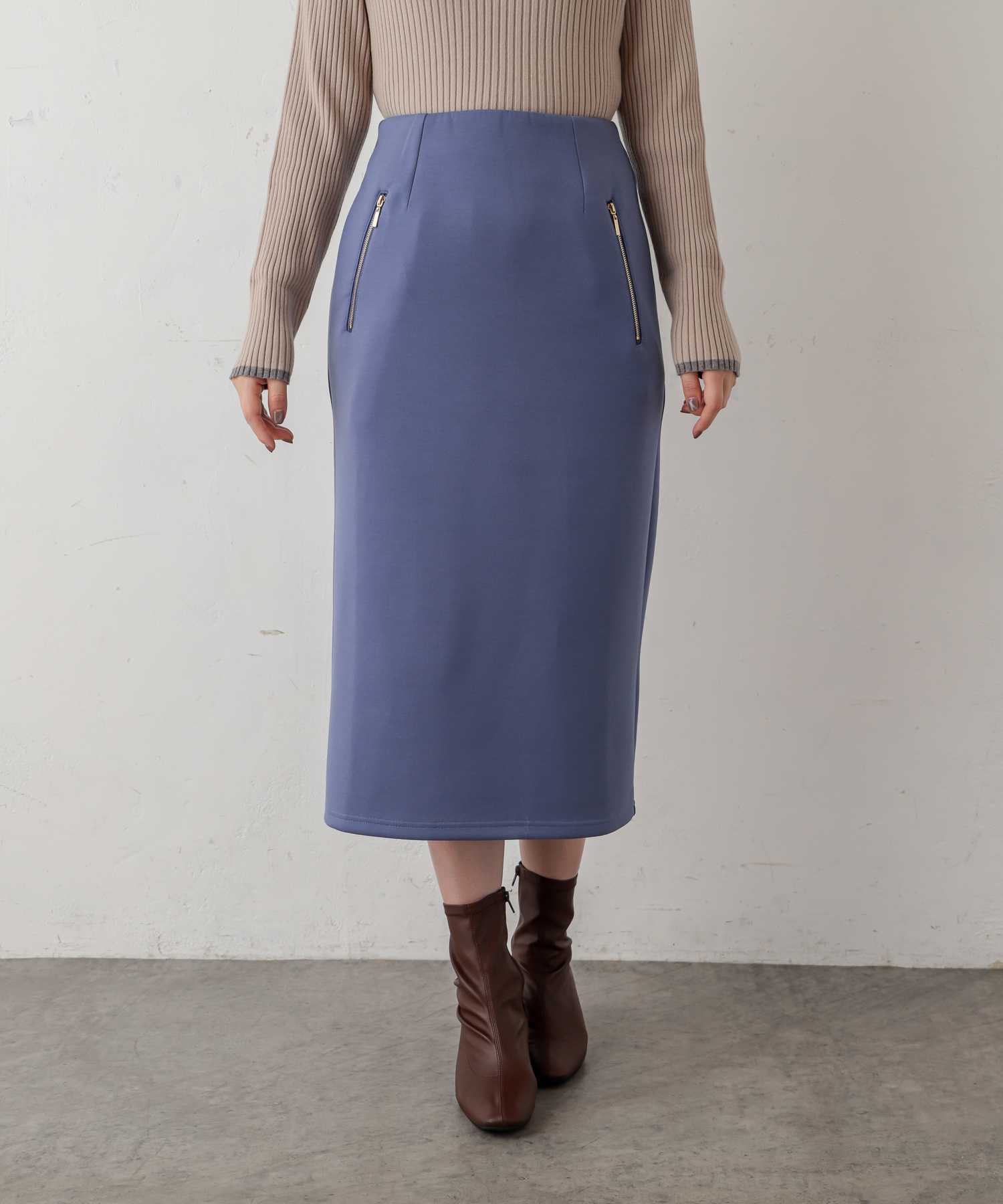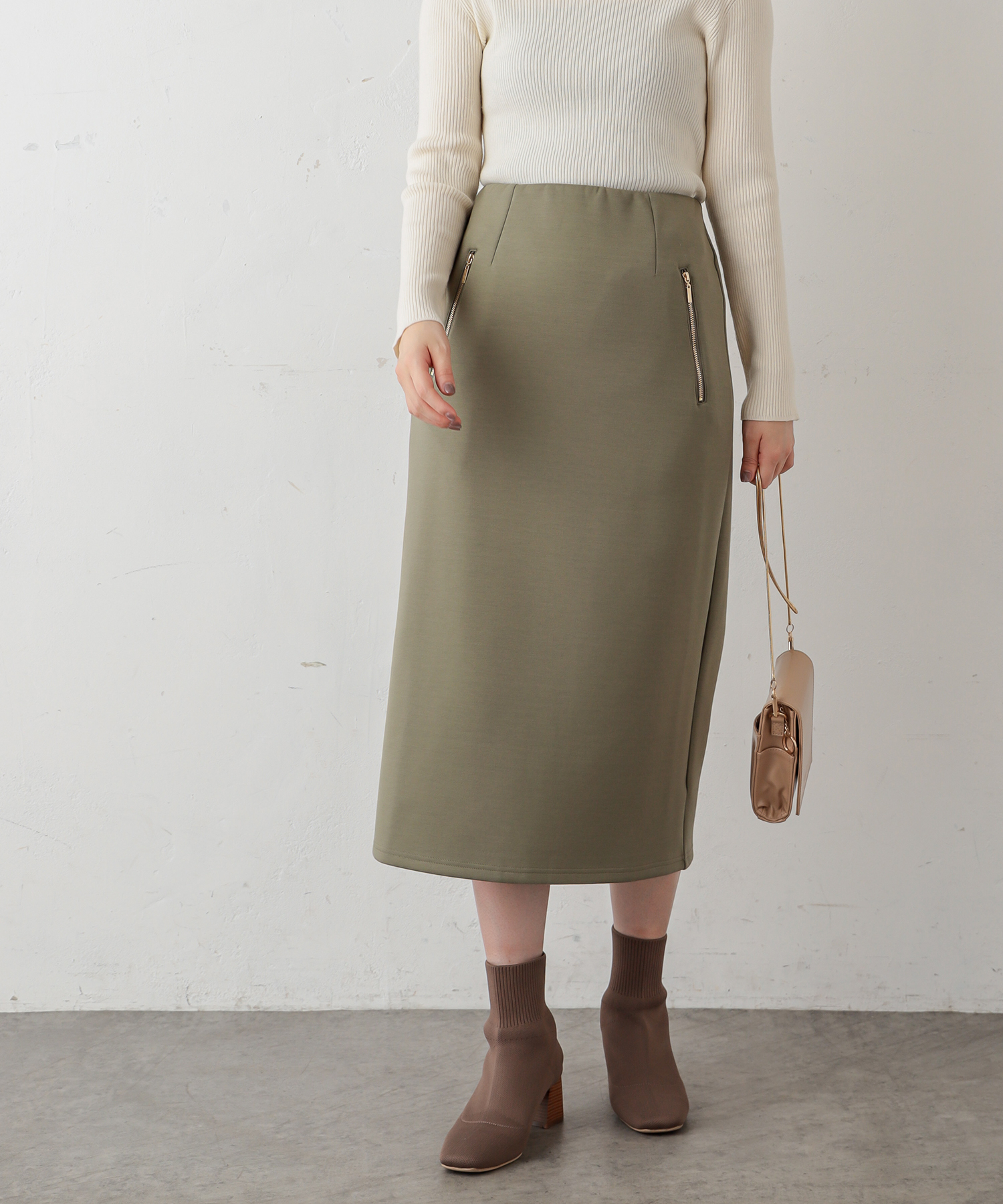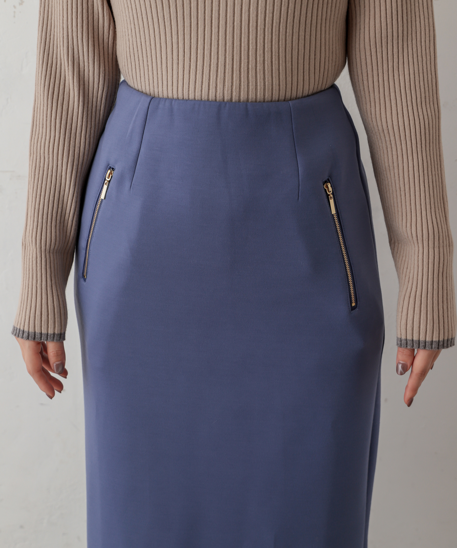 ダブルジップダンボールニットきれいめスカート