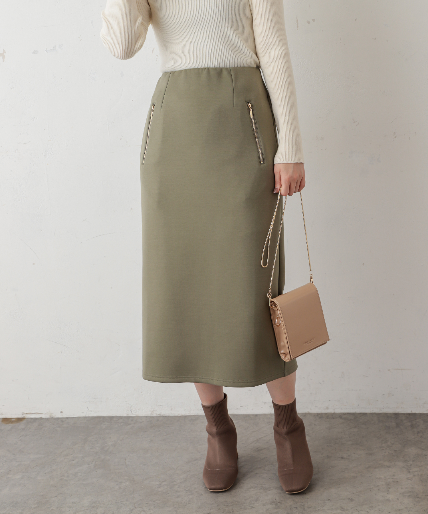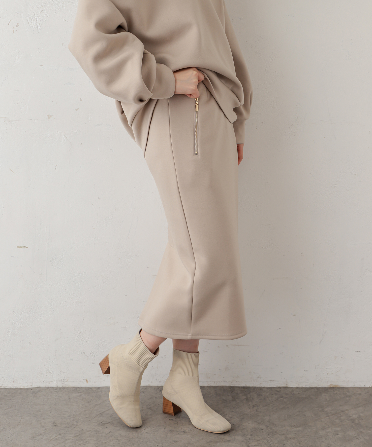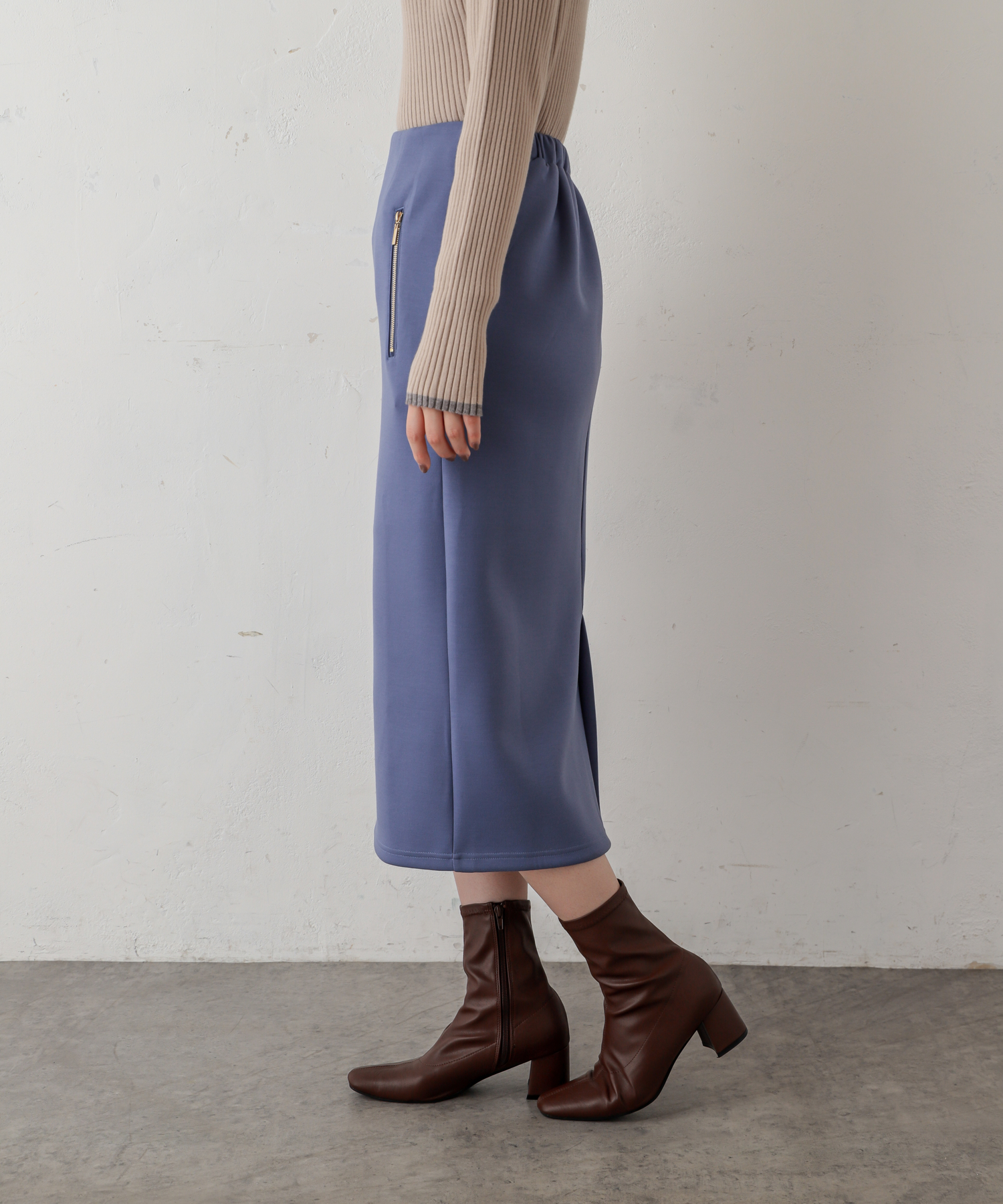 ダブルジップダンボールニットきれいめスカート