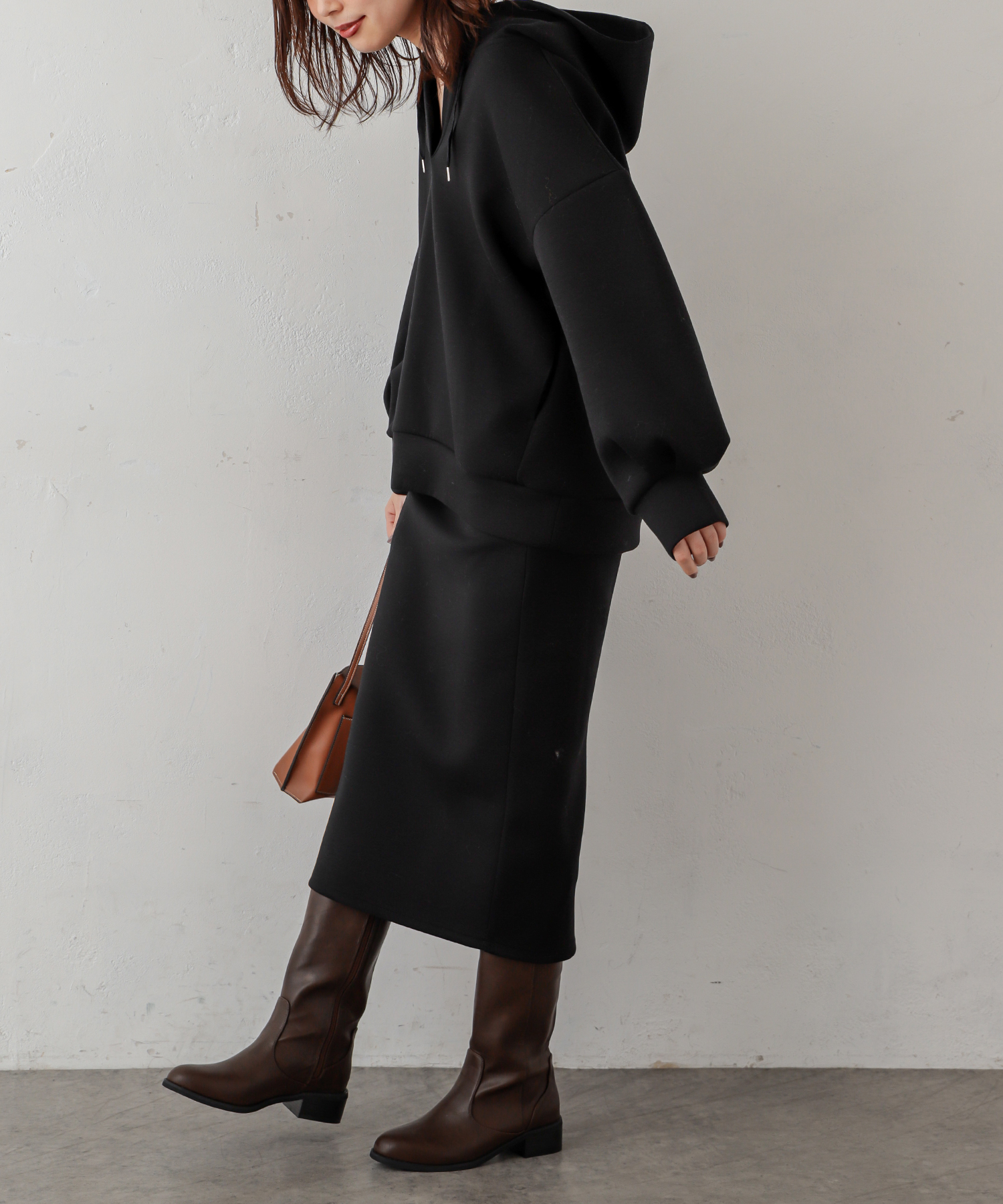 同素材の【326620720:ダンボールニットコクーンパーカー】とセットアップでお召し頂くのもオススメです。