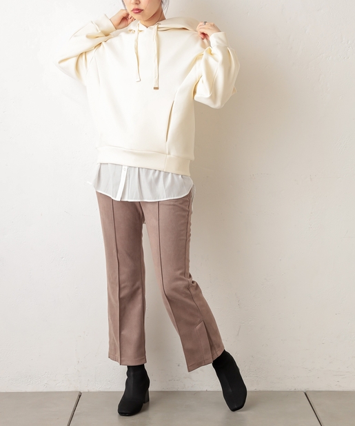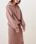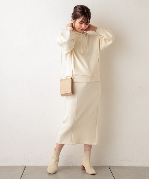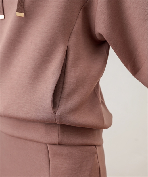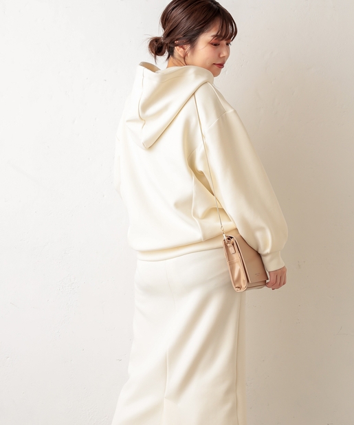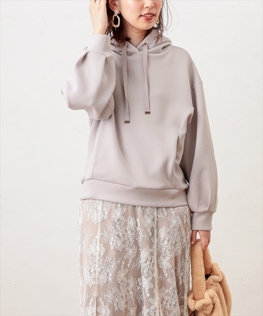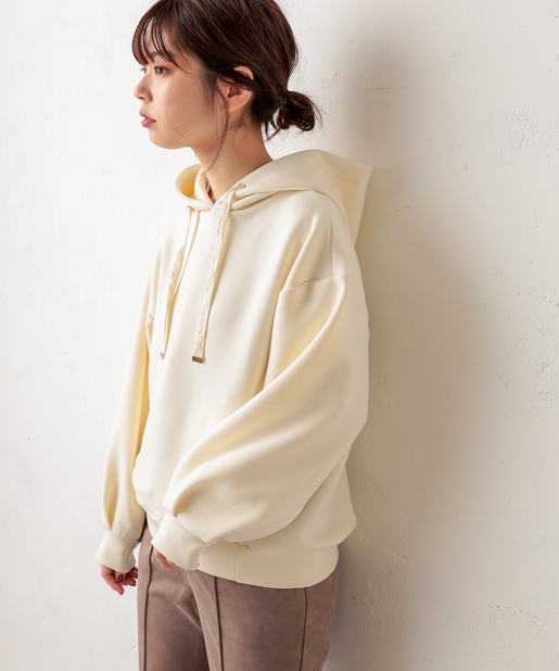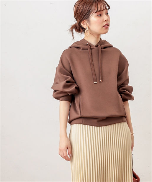 ふんわりと肌触りが良く滑らかな仕上がりに加え、厚地でしっかりしており秋から冬にかけて長く着用可能です。程よいルーズ感と立体感のあるフードがお洒落に見せてくれます。女性らしいスカートとの相性も良いためカジュアル過ぎないコーデにもマッチするパーカーです。どんなボトムにも合わせやすく、こなれ感のあるカジュアルスタイルにメイクしてくれます。同素材でお作りしている【326400310:ふわもちラテスカート】とセットアップコーデもオススメ◎カラーはつい迷ってしまう、心癒される可愛らしい4色のラテカラーをご用意しております。