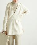 ジャガード織りのニットパンツやスラックスなど、異素材のきれいめなボトムスと合わせて、