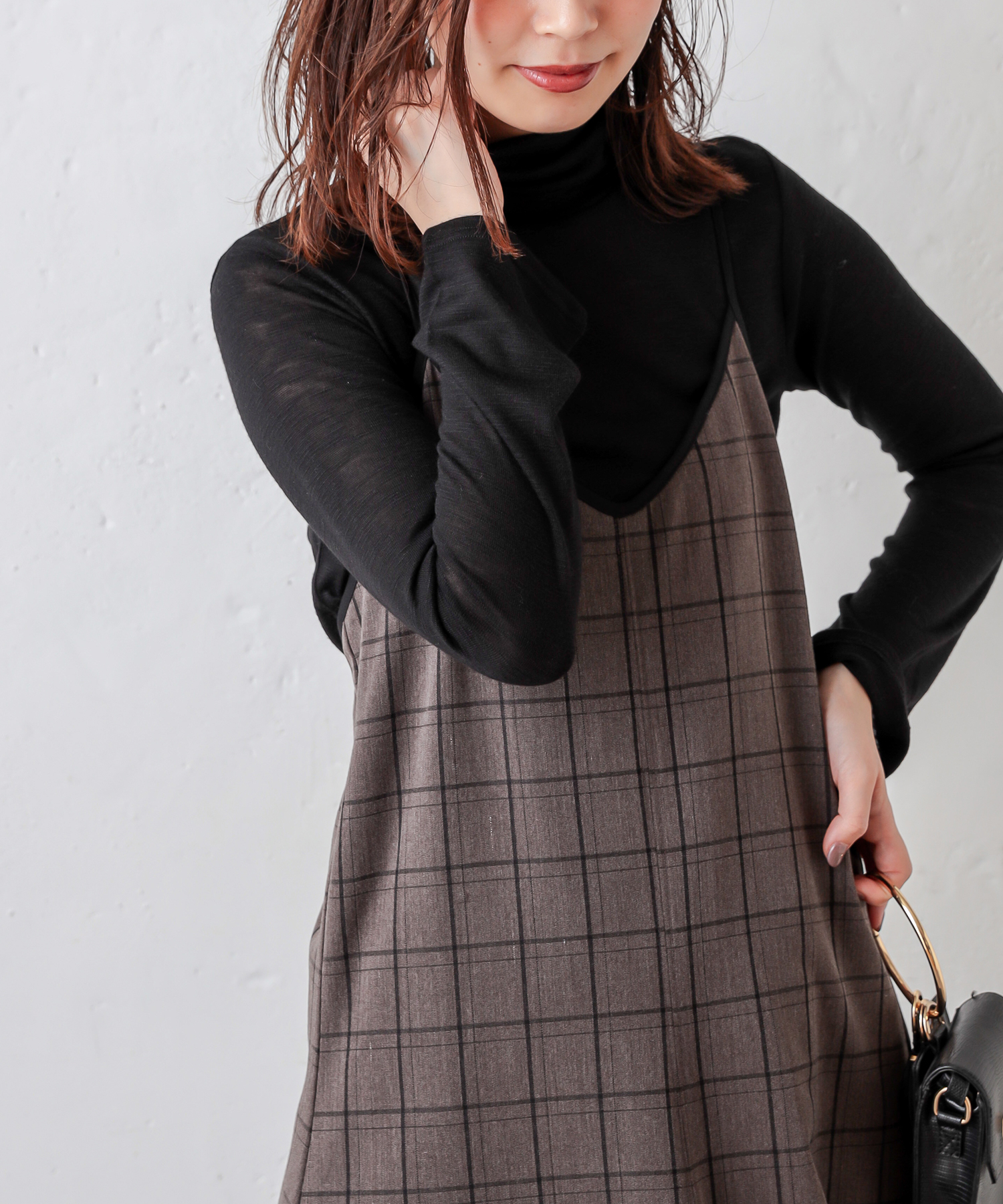 ワンピース、ジャケットなどのレイヤード合わせでコーディネート力を発揮します。