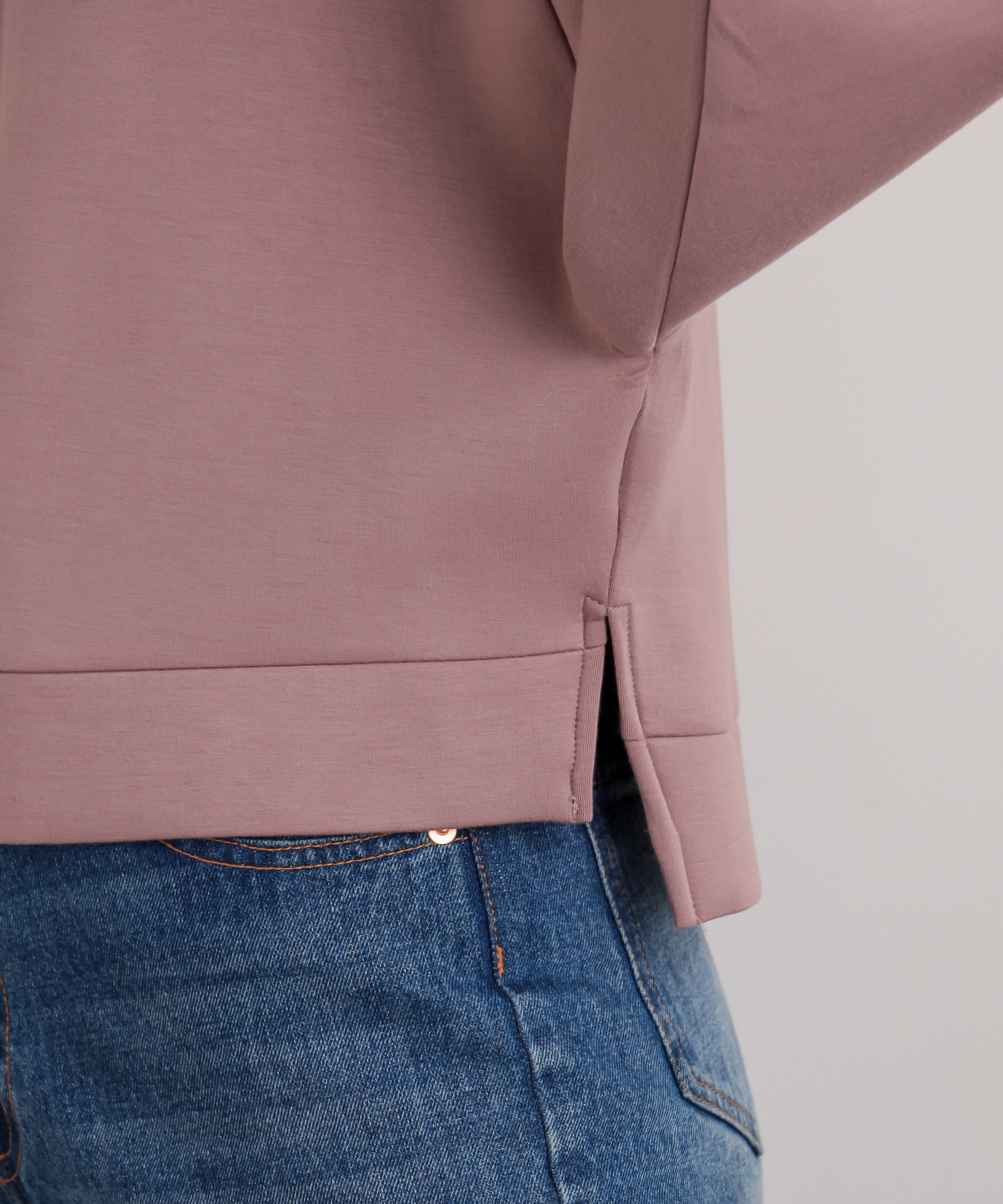 一般的な綿のスウェットアイテムに比べカジュアル感が抑えられるので、