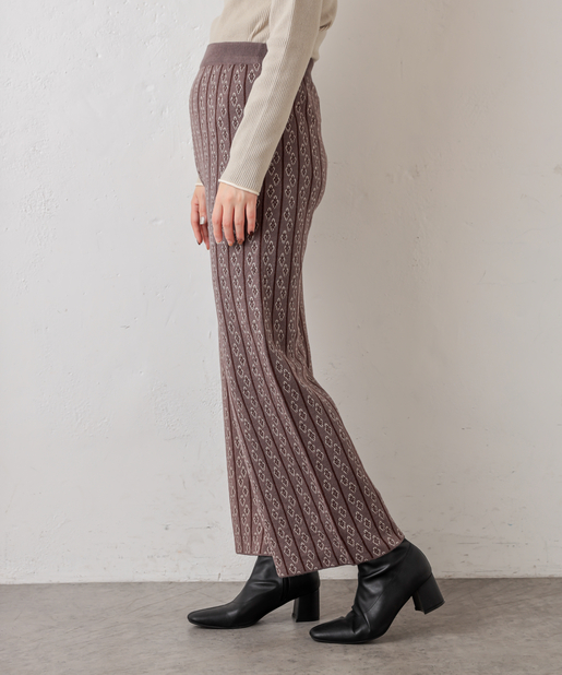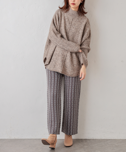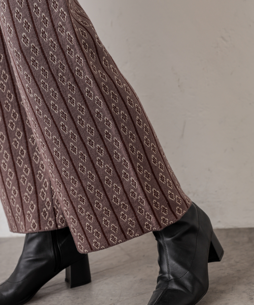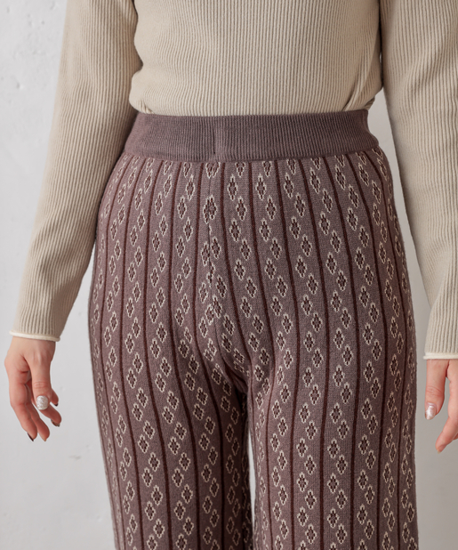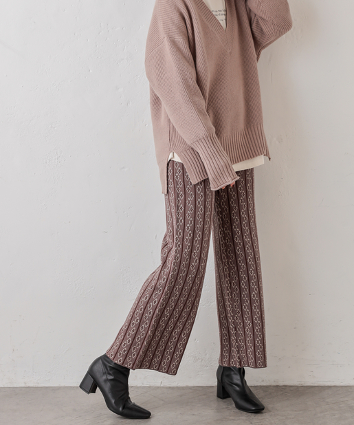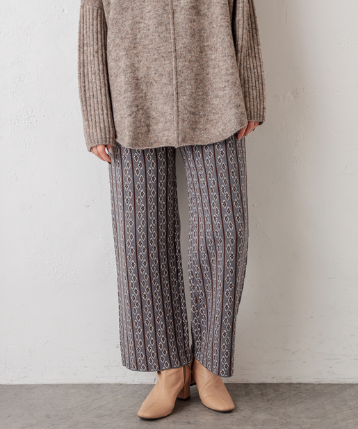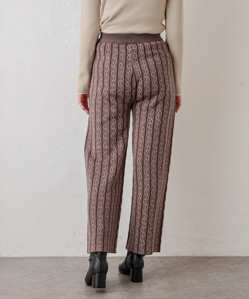 秋冬らしい小紋柄のジャカード織りが特徴のリラックス感漂うニットパンツ。