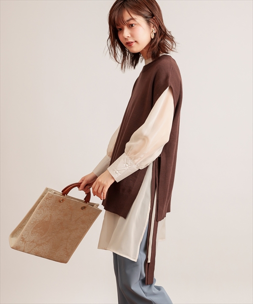 ほっこりとした生地でレイヤードテクニック上級者なニットべスト!