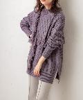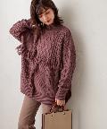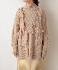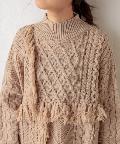 ケーブルニット、フリンジの立体感がスタイリングの鮮度をアップしてくれるニット。