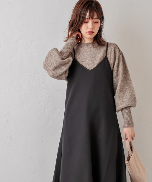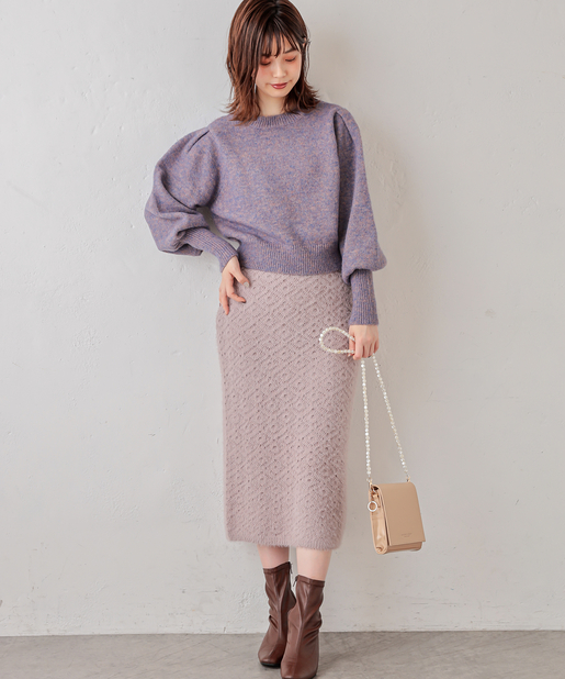 袖コンシャスミックスヤーンニット