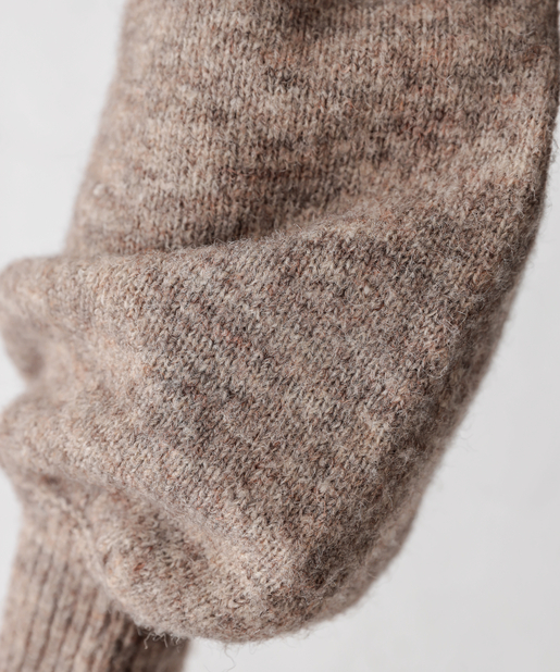 ほっこりとしたMIXヤーンの糸を使用した、目を引くカラーリングは、コートを羽織っても差し色として覗く、
