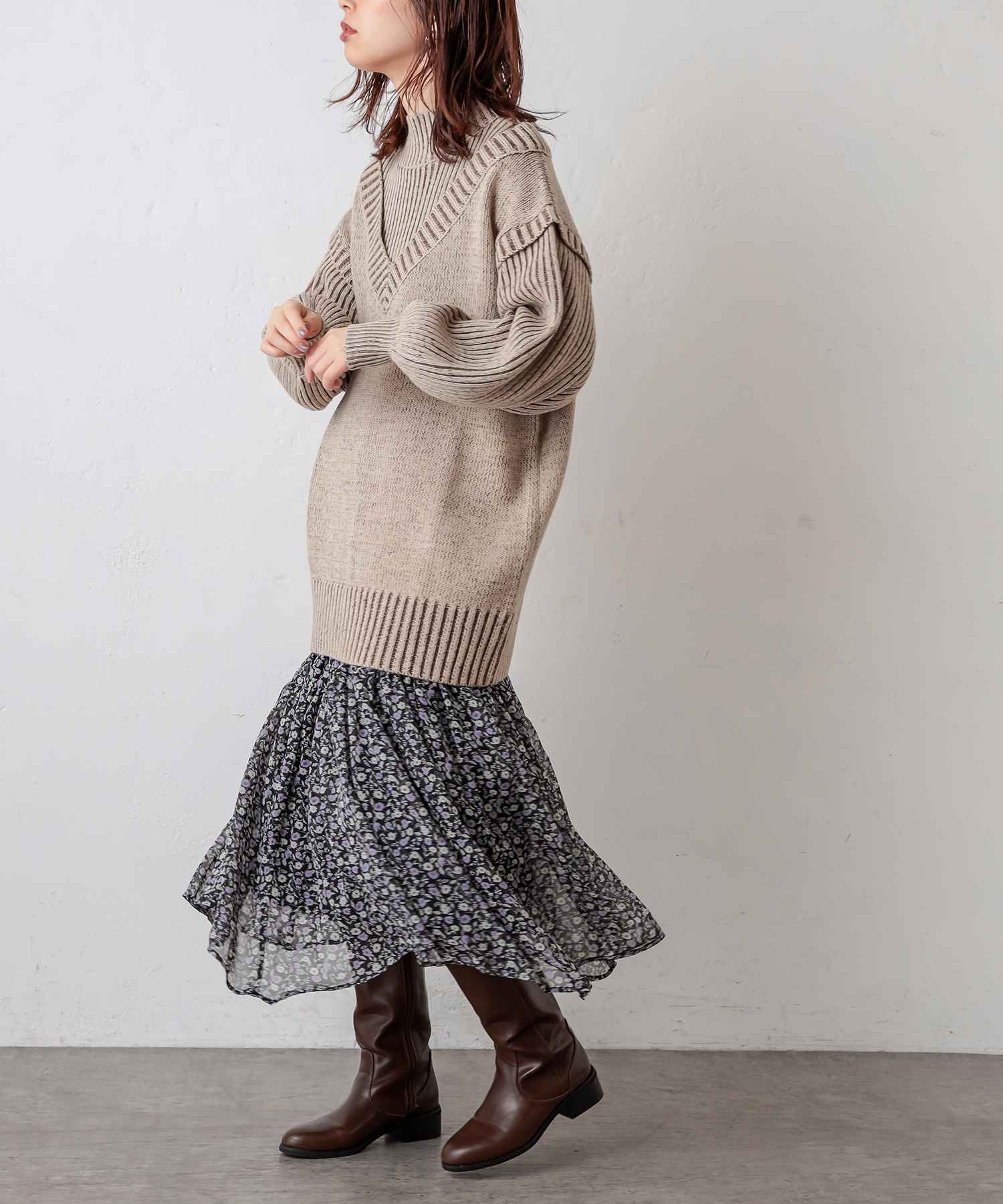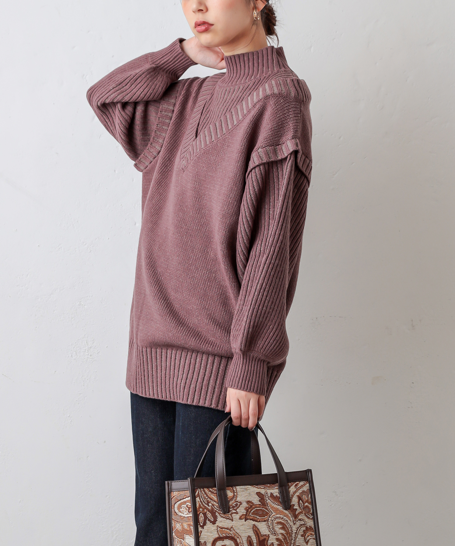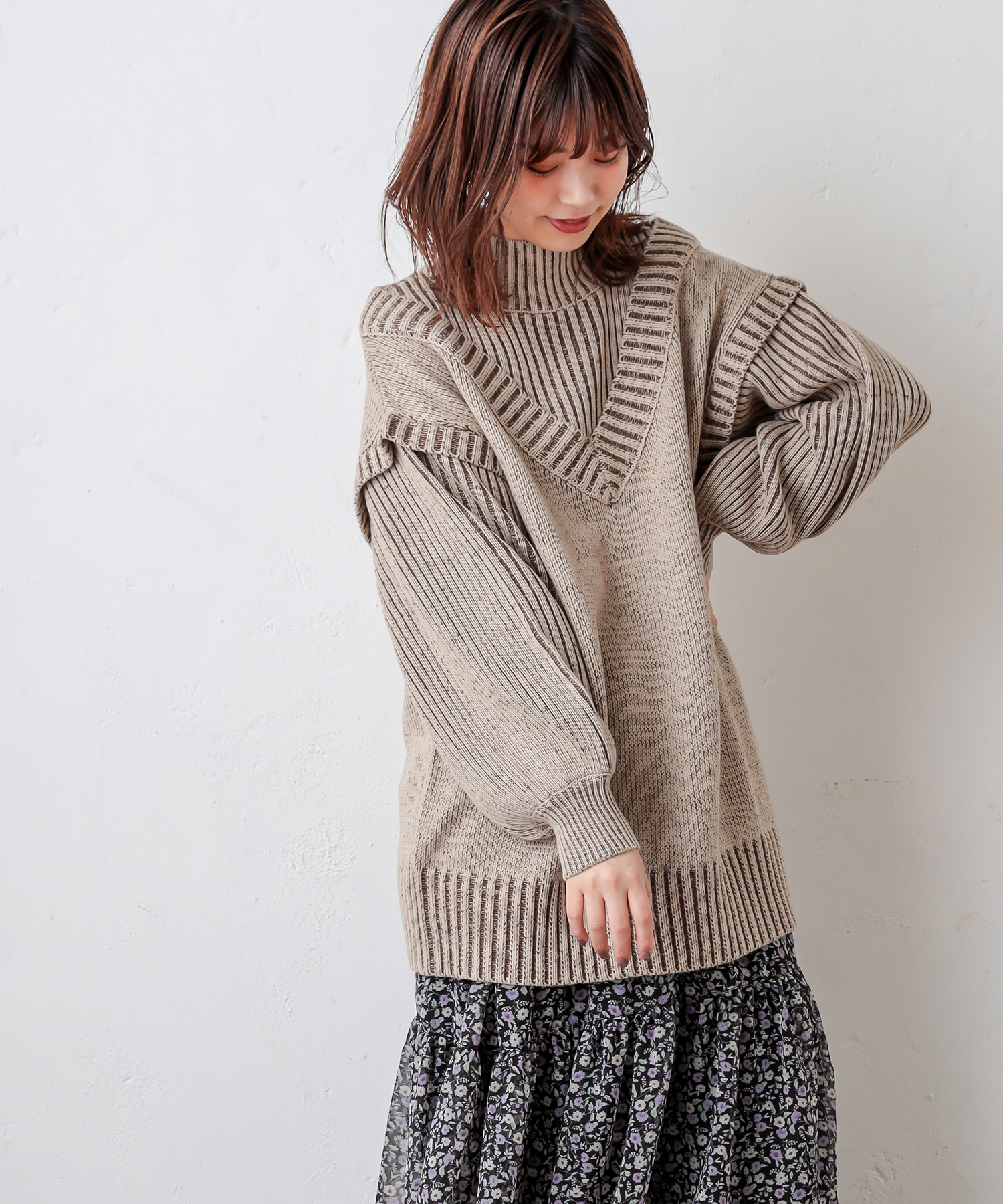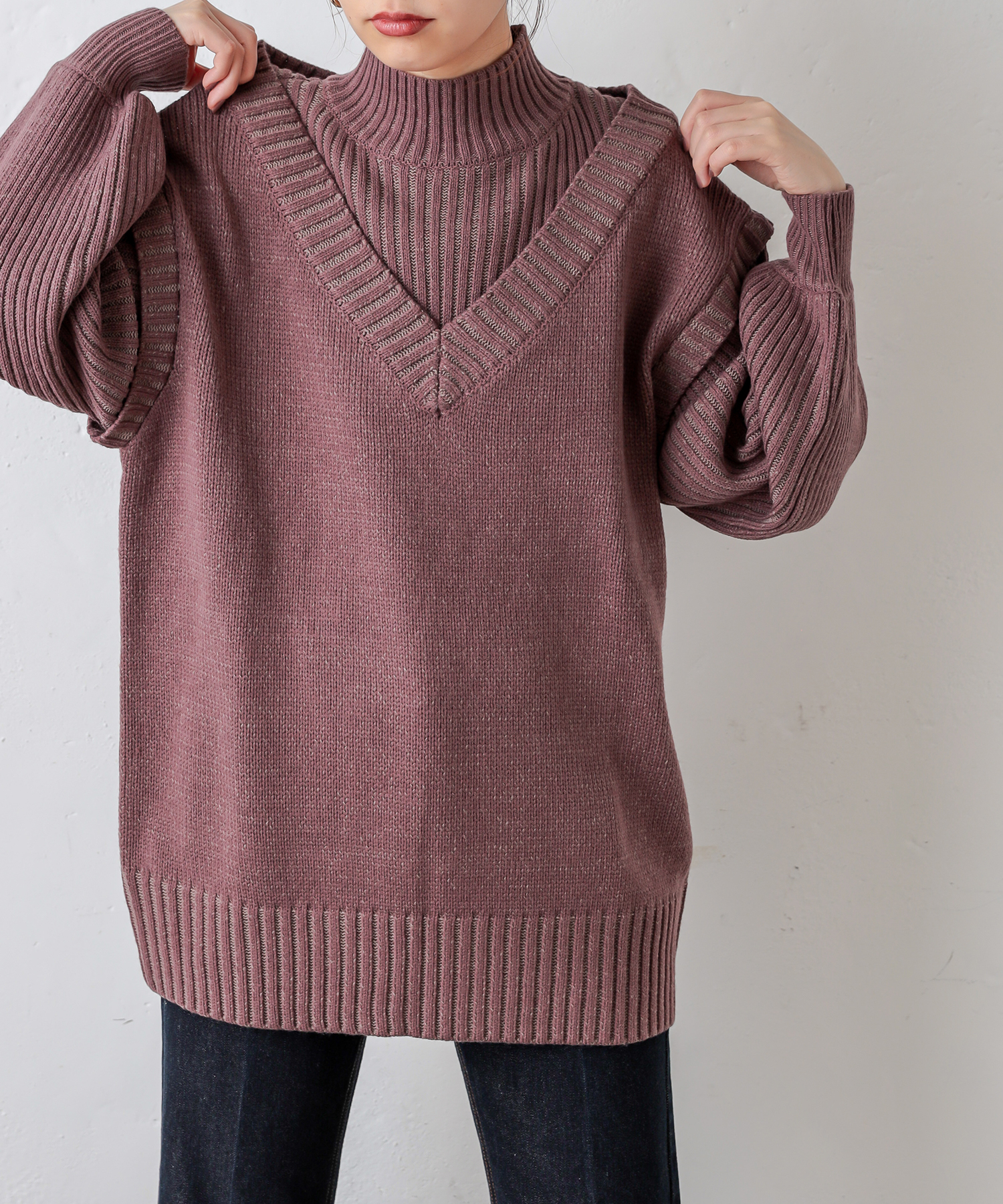 【WEB限定カラー有り】レイヤード風おしゃれニット