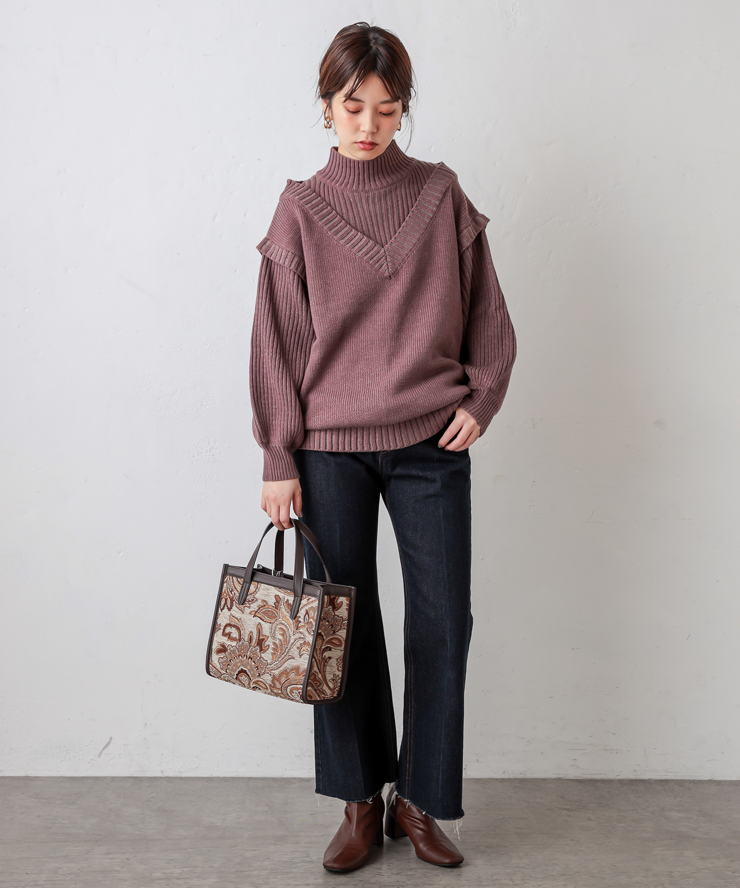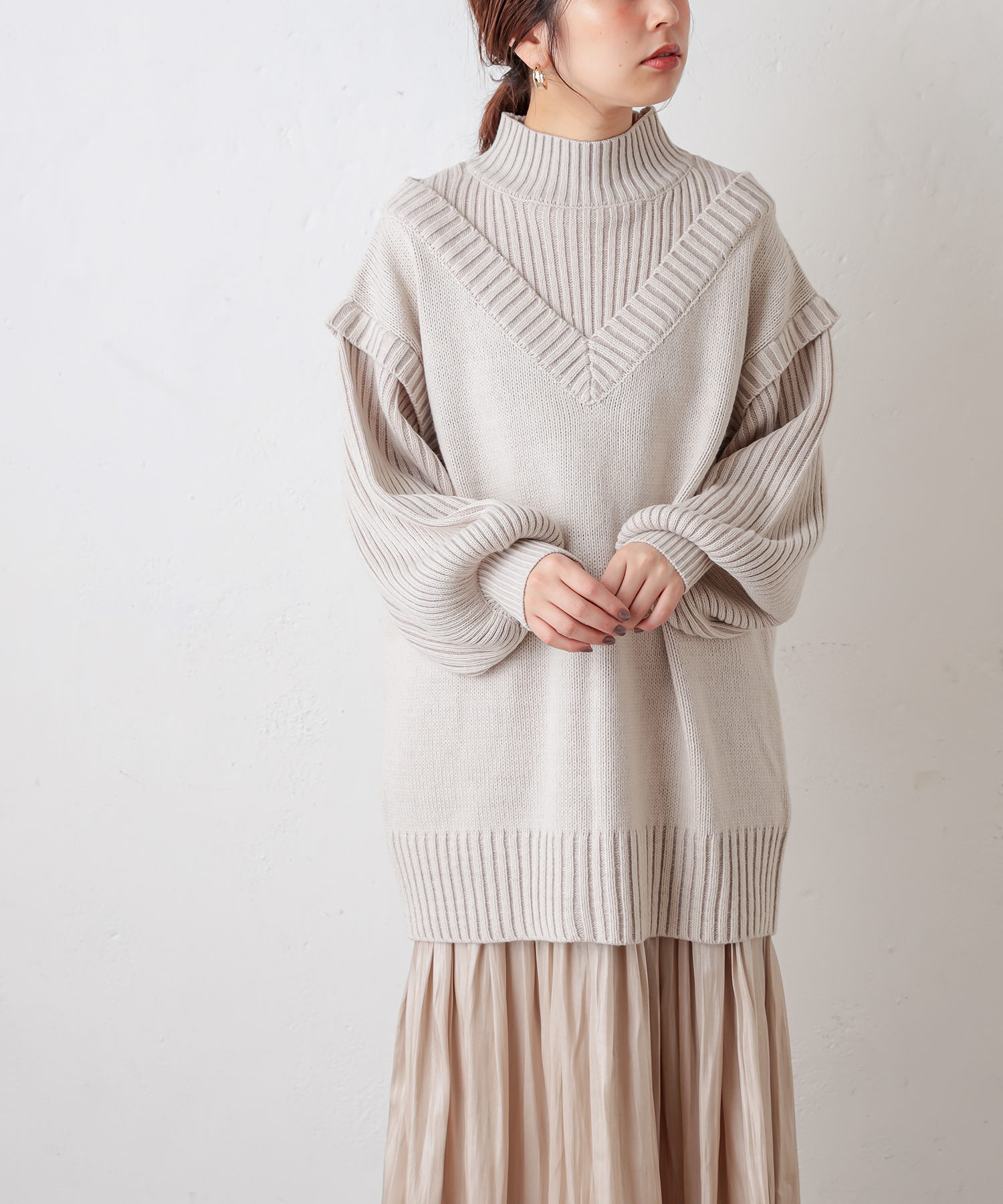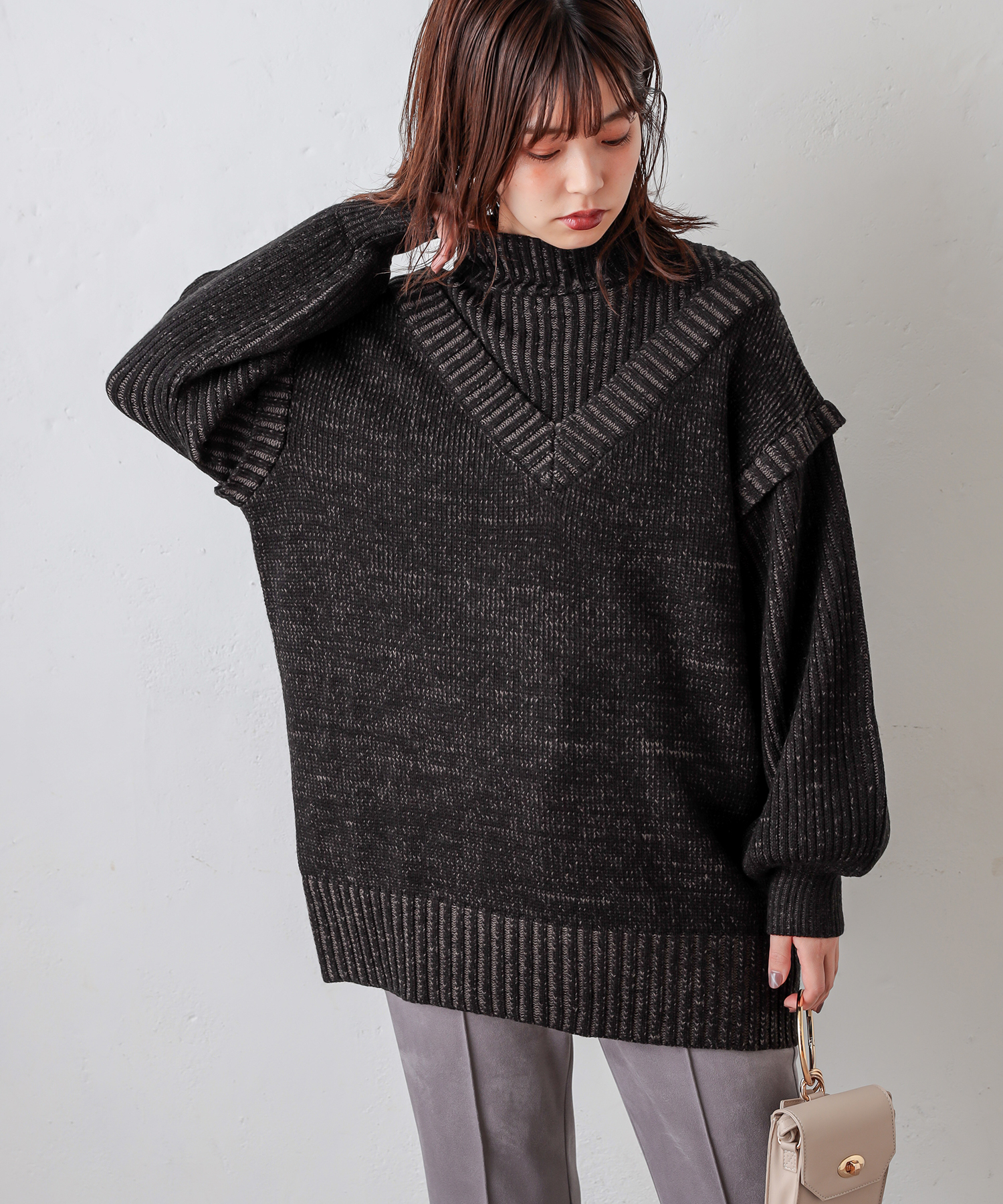 ベスト×ニットのレイヤード風のデザインで他にはないアイテム。