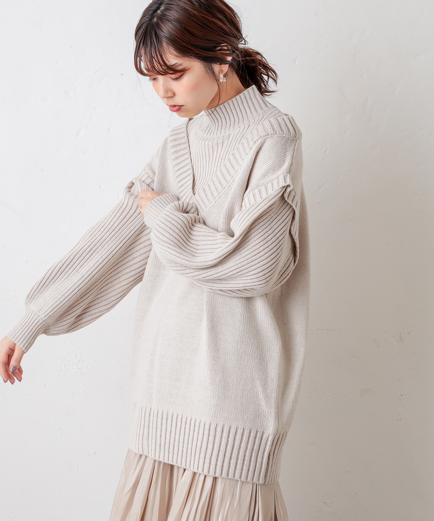 ゆったりシルエットなので、細身のパンツや長めのタイトスカートと
