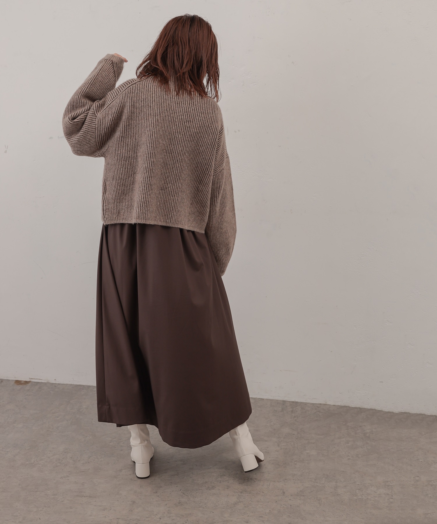 暖かく、落ち感のあるドロップショルダーが女性らしいフォルムを演出。