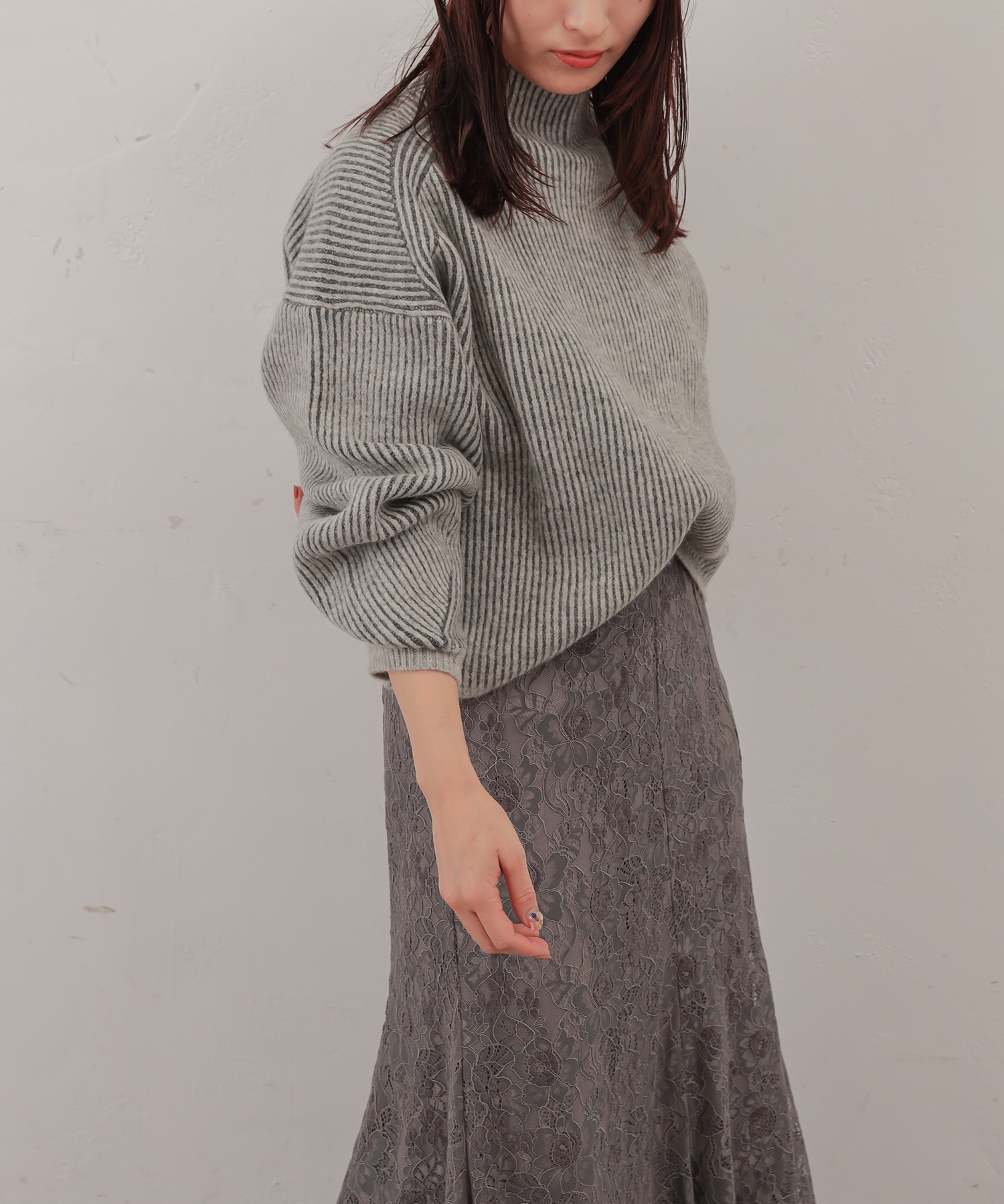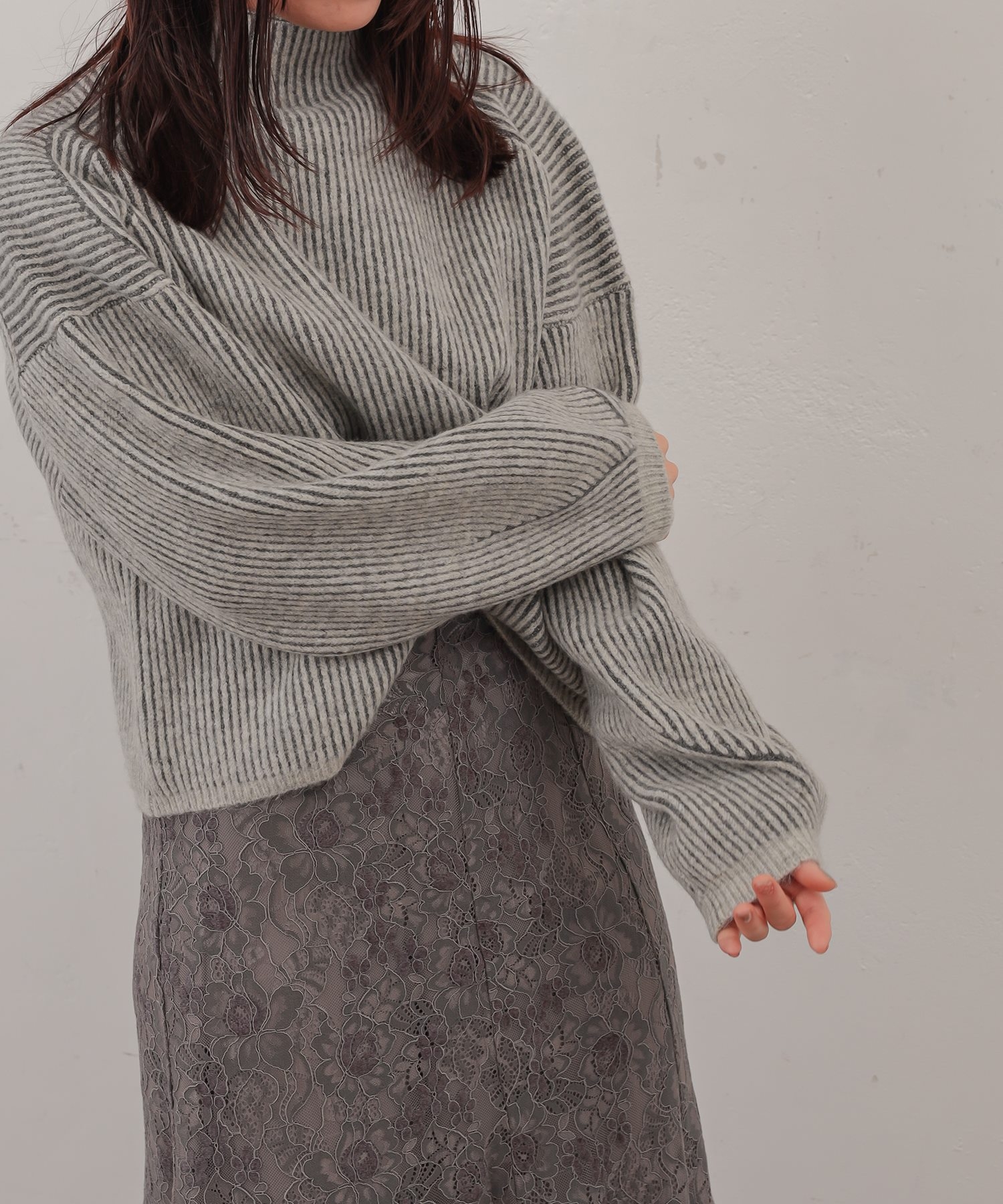 natural couture(ナチュラルクチュール) 【大人ナチュ】ボトルネックストライプニット