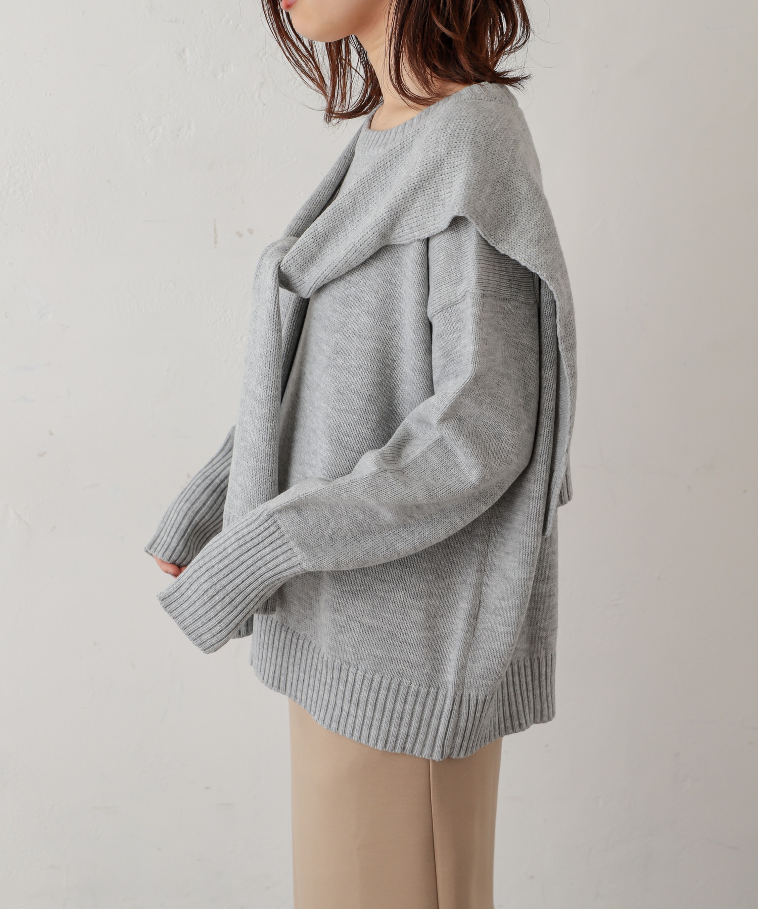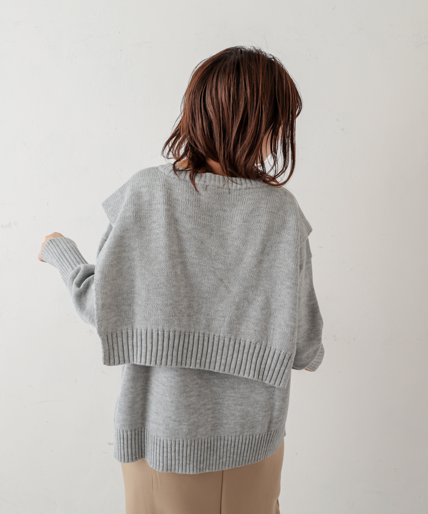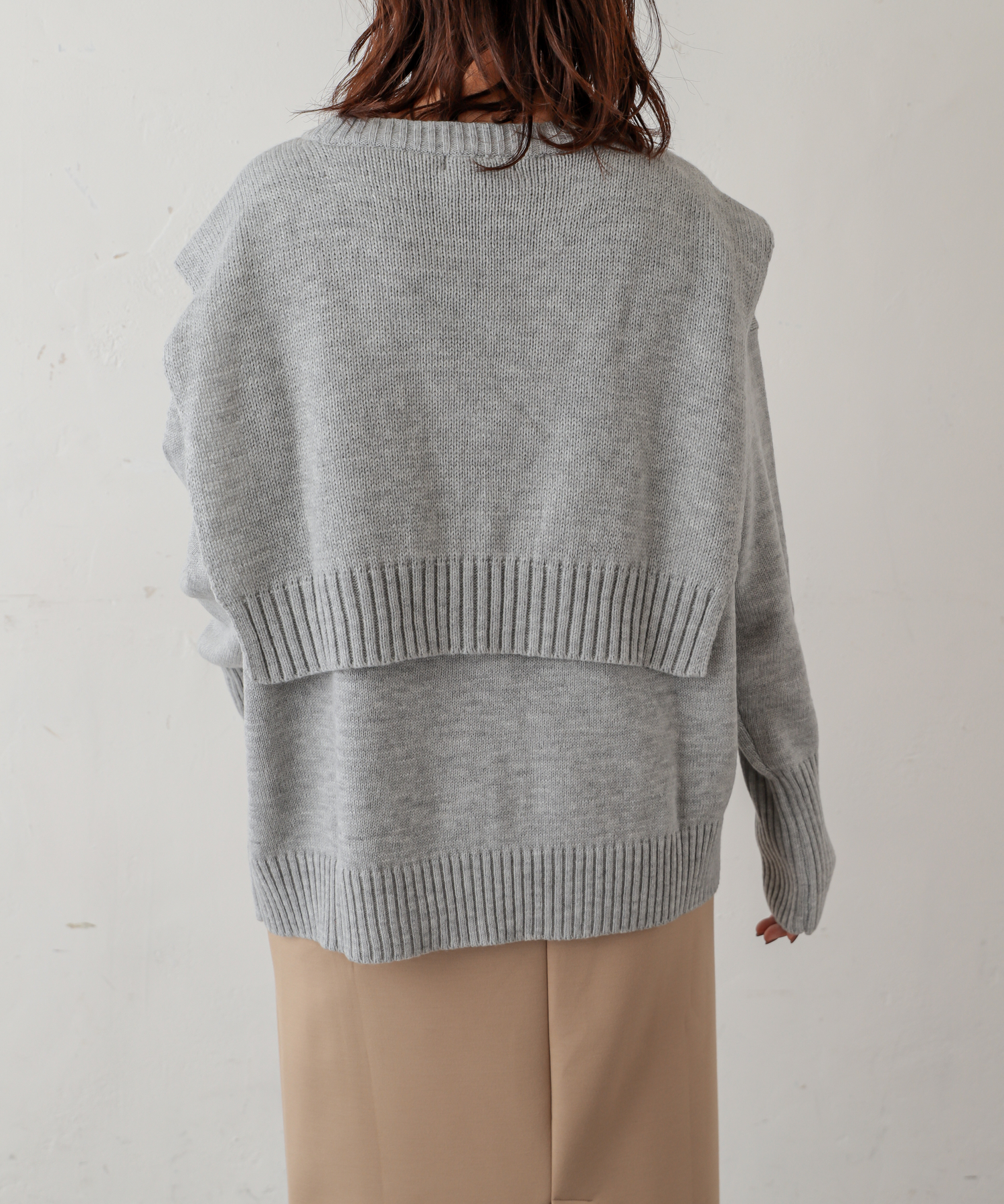 フロントむすびレイヤード風ニットプルオーバー