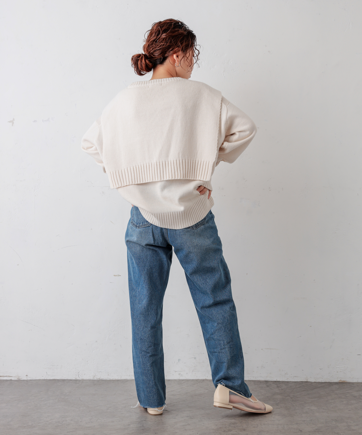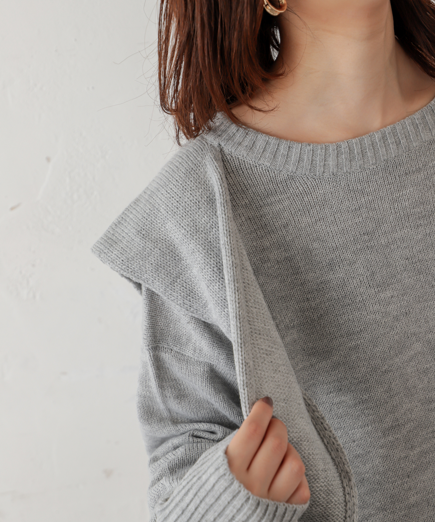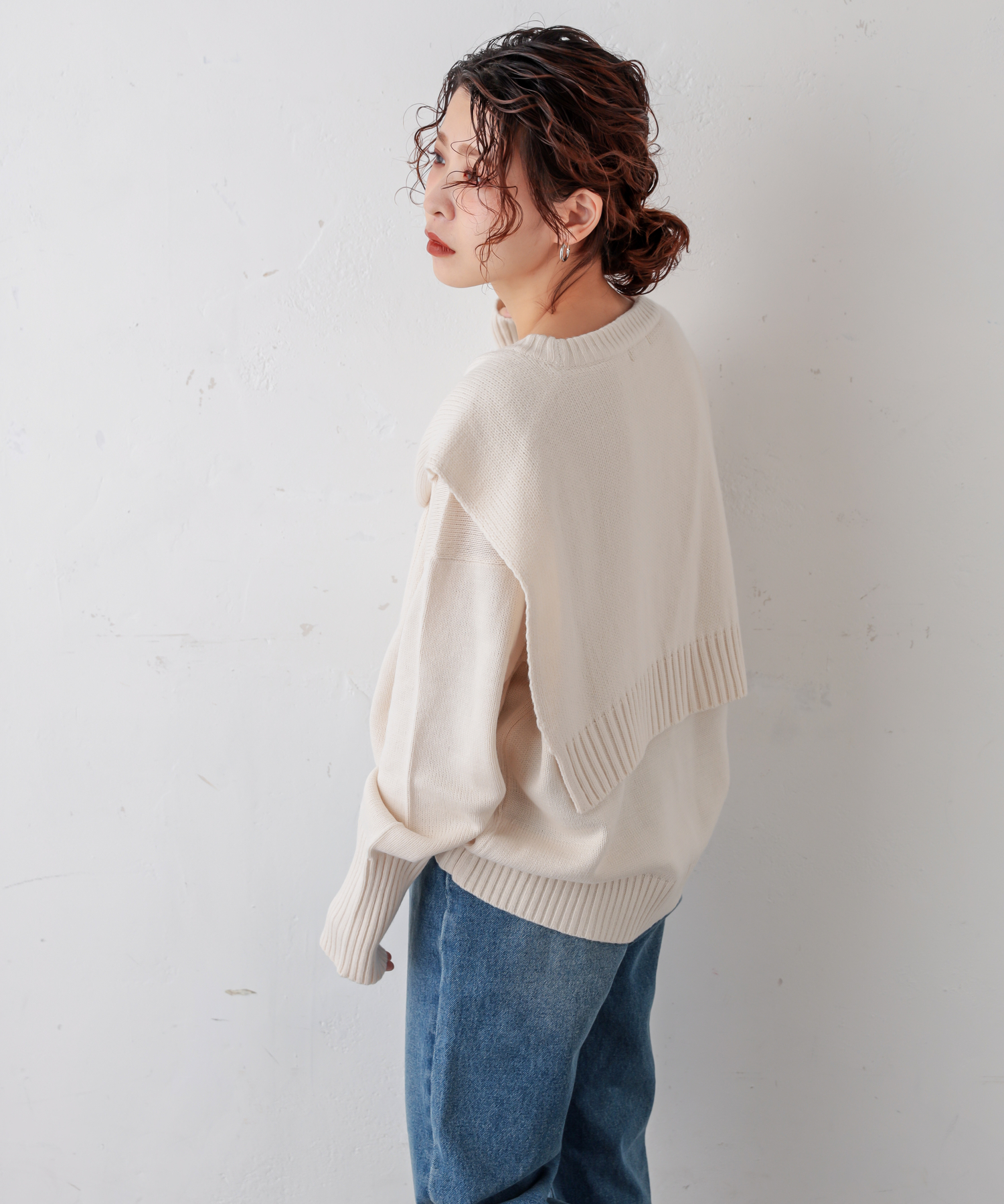 フロントむすびレイヤード風ニットプルオーバー