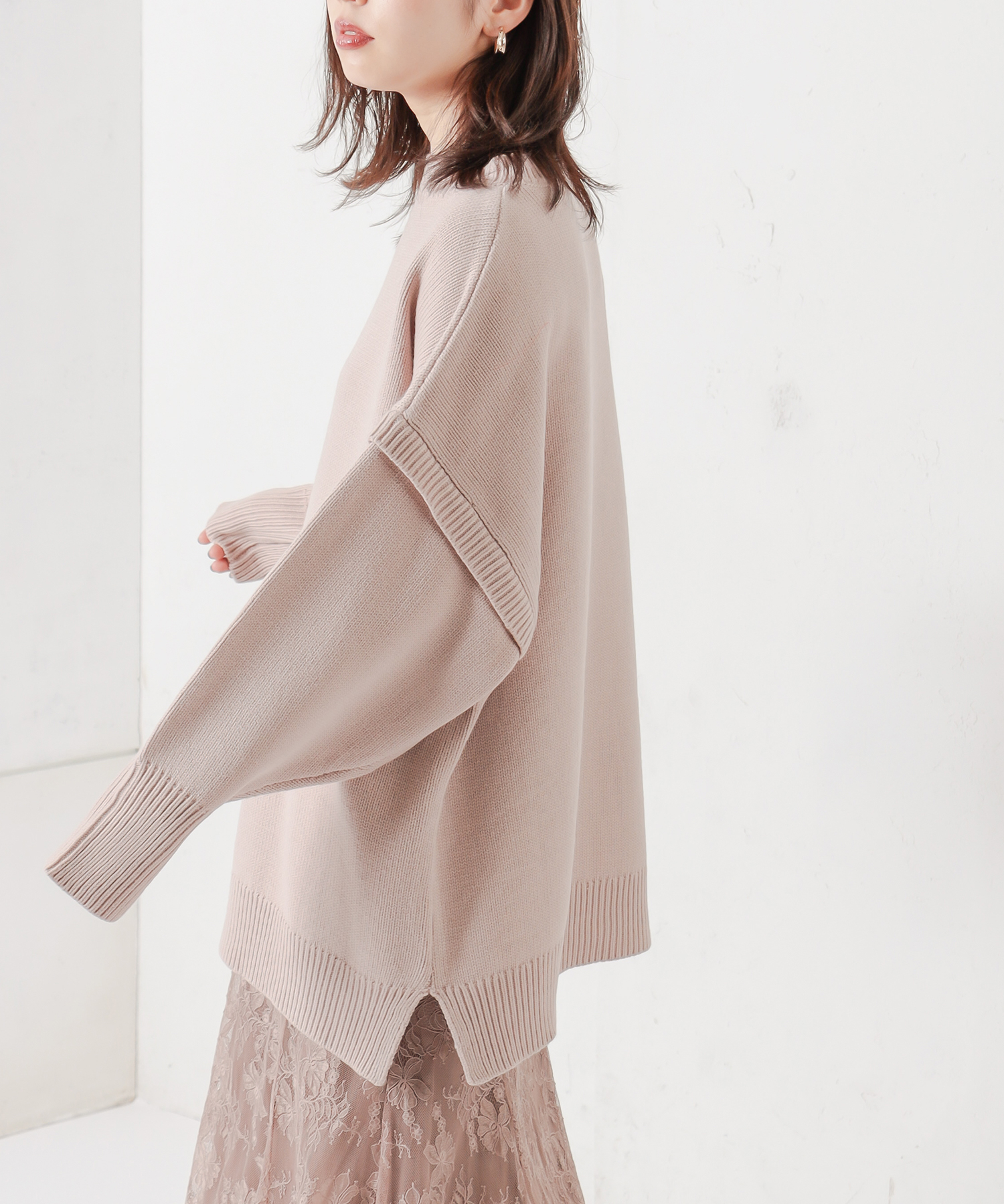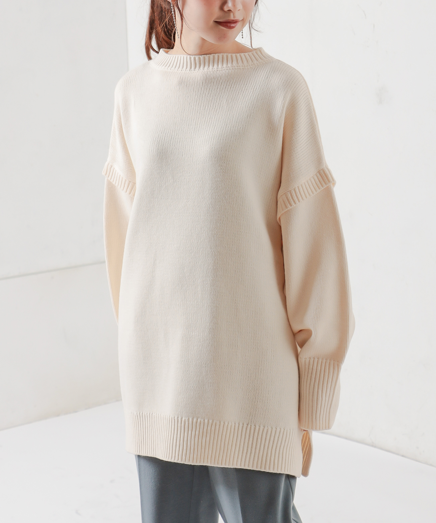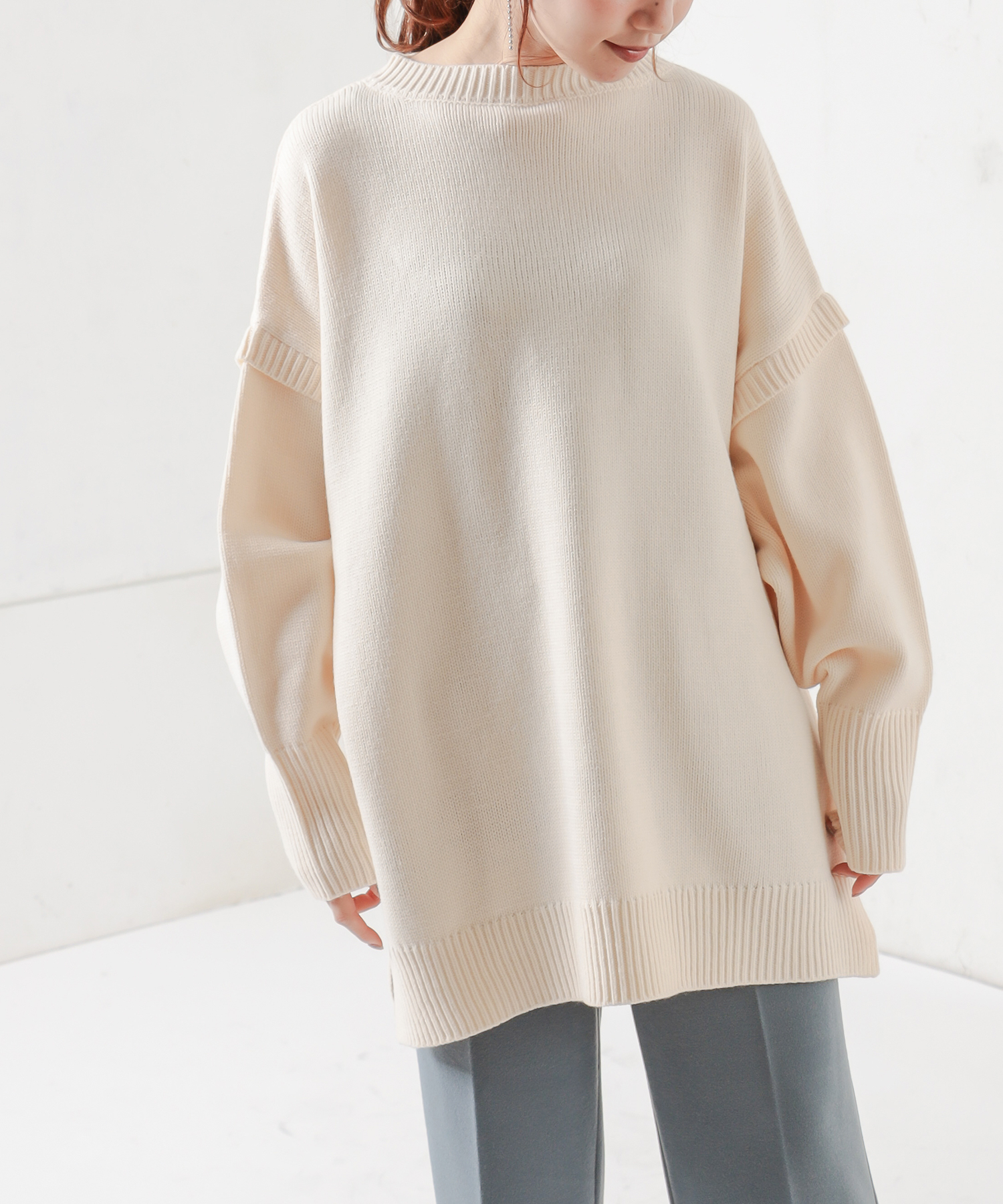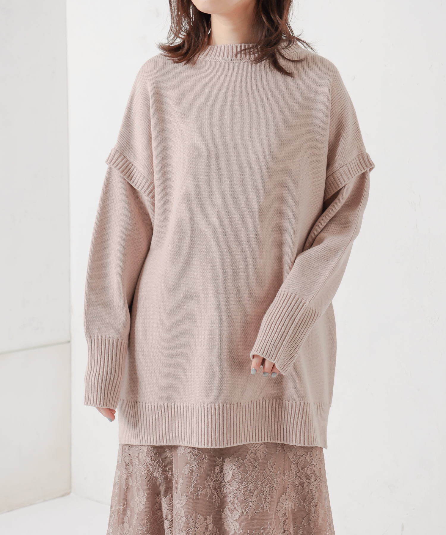 TOP > natural couture > レディース > トップス > ニット/セーター > ビッグシルエット肩リブデザインチュニック
