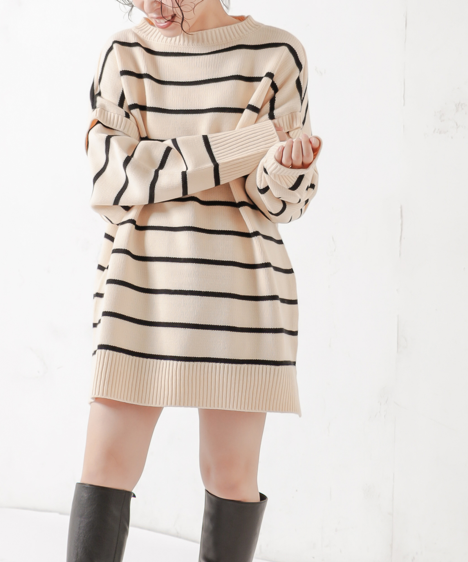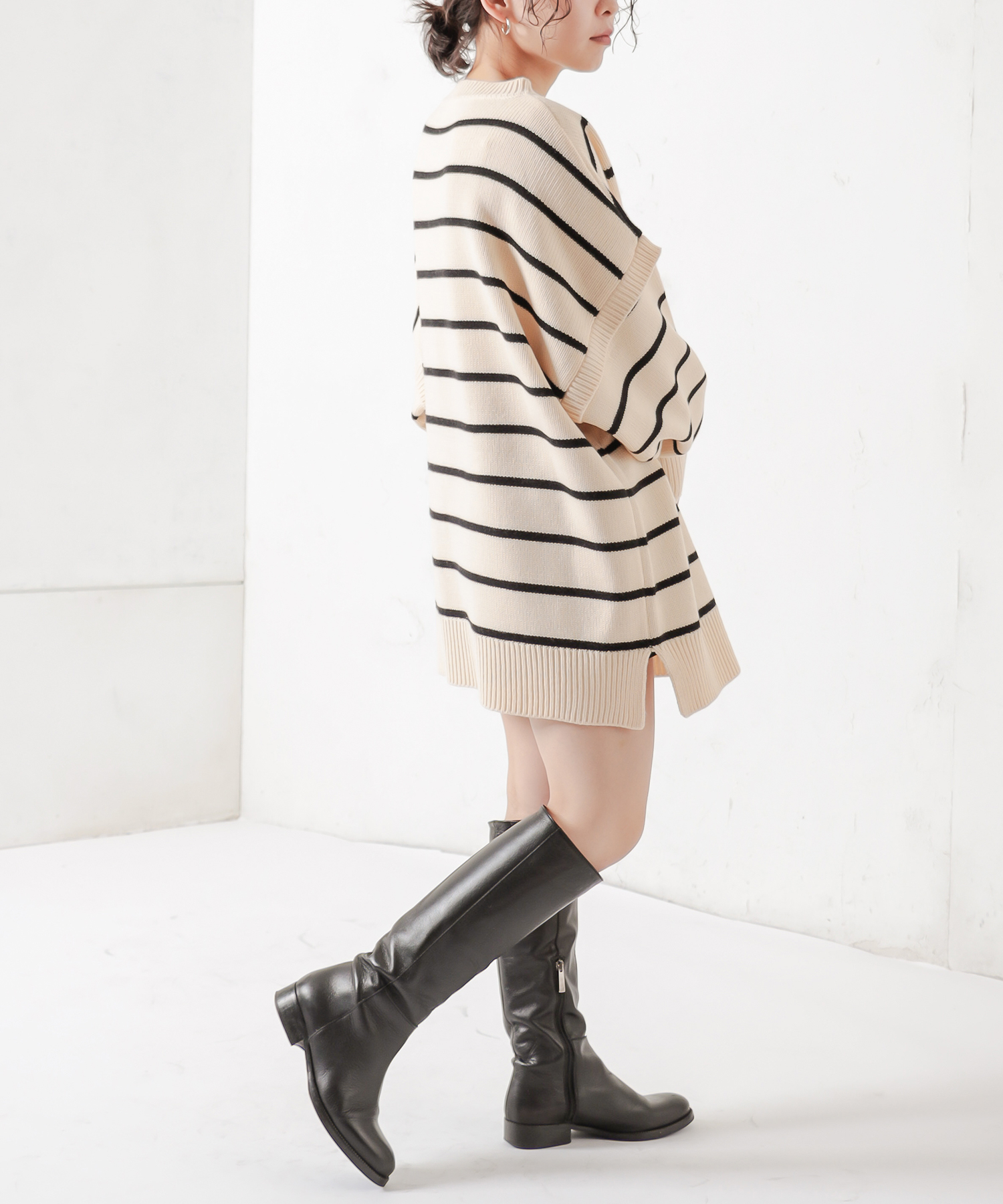 ボーダーは、カジュアル過ぎないよう細めのピッチで上品さを残しました