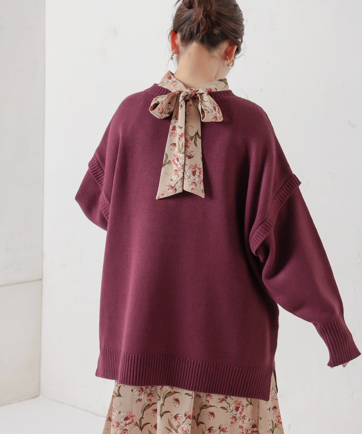 長い袖がたぽっとたまる感じが女性らしいシルエットもデザイナーのこだわりポイントです。
