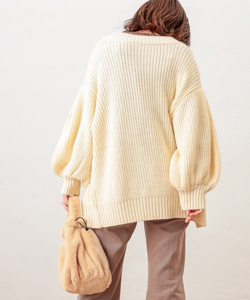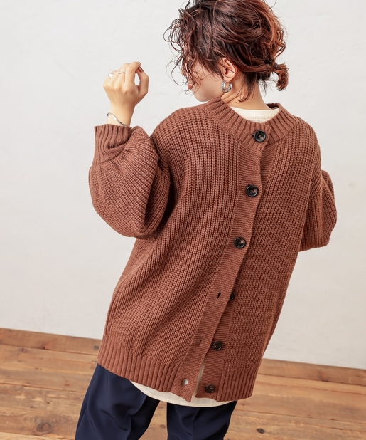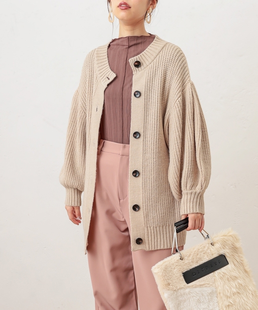 ぽわんとしたボリュームスリーブがポイントの便利アイテム。少し崩して着用すると、程よいオトナの抜け感を与えてくれ、ふっくらとした立体的なフォルムで存在感抜群!その日の気分で、プルオーバーとしても着用できる2WAY仕様です。トレンドのパンツには勿論、ワンピと合わせても新鮮な丈感。幅広い着こなしにマッチするシンプルさで、カジュアルなデイリー使いにもお出かけにも活躍します。大人の可憐さを引き出すアイボリー、やわらかな印象のライトベージュ、こなれ感が出るブルー、レトロな雰囲気のブラウンの4色ご用意しました。