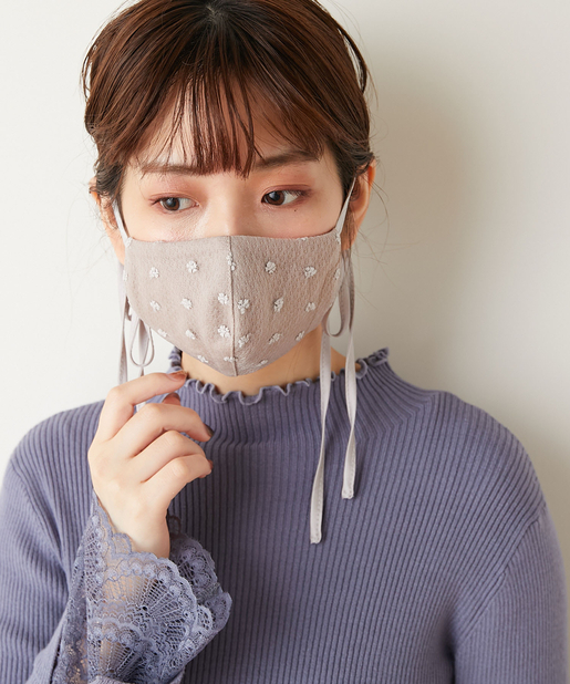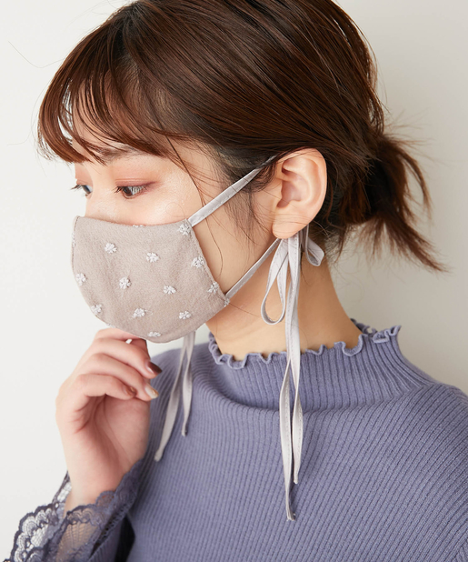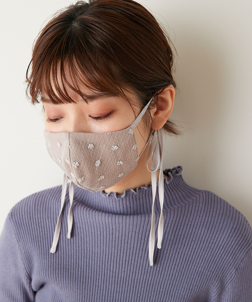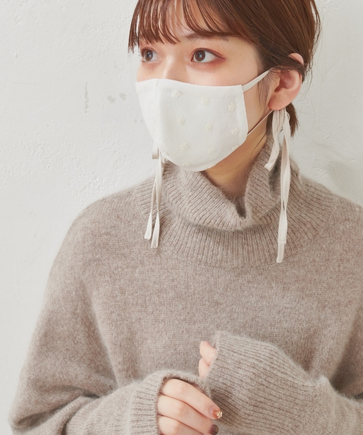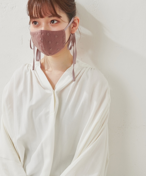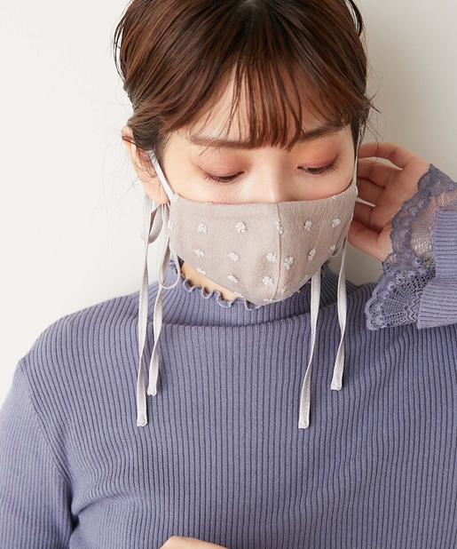 マスクの紐部分にはサテン生地を採用し、表面にはチュールレースを施した、