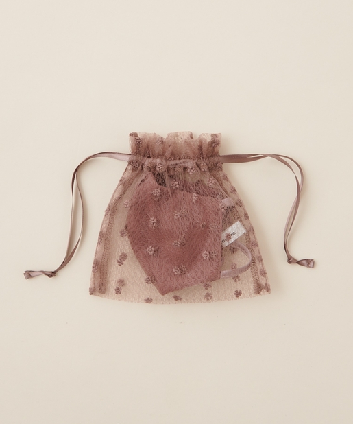 マスクのチュールレースと同じ生地を使用した、巾着型ポーチがセットになった特別感のある1品。
