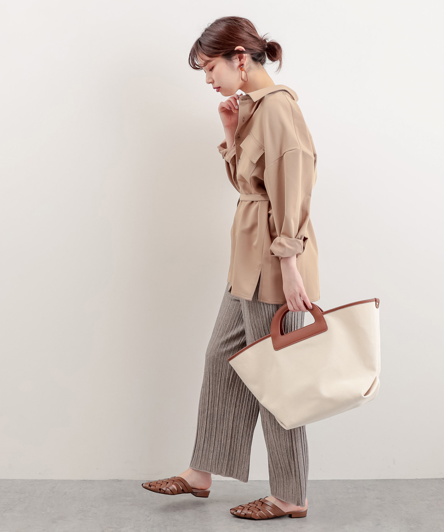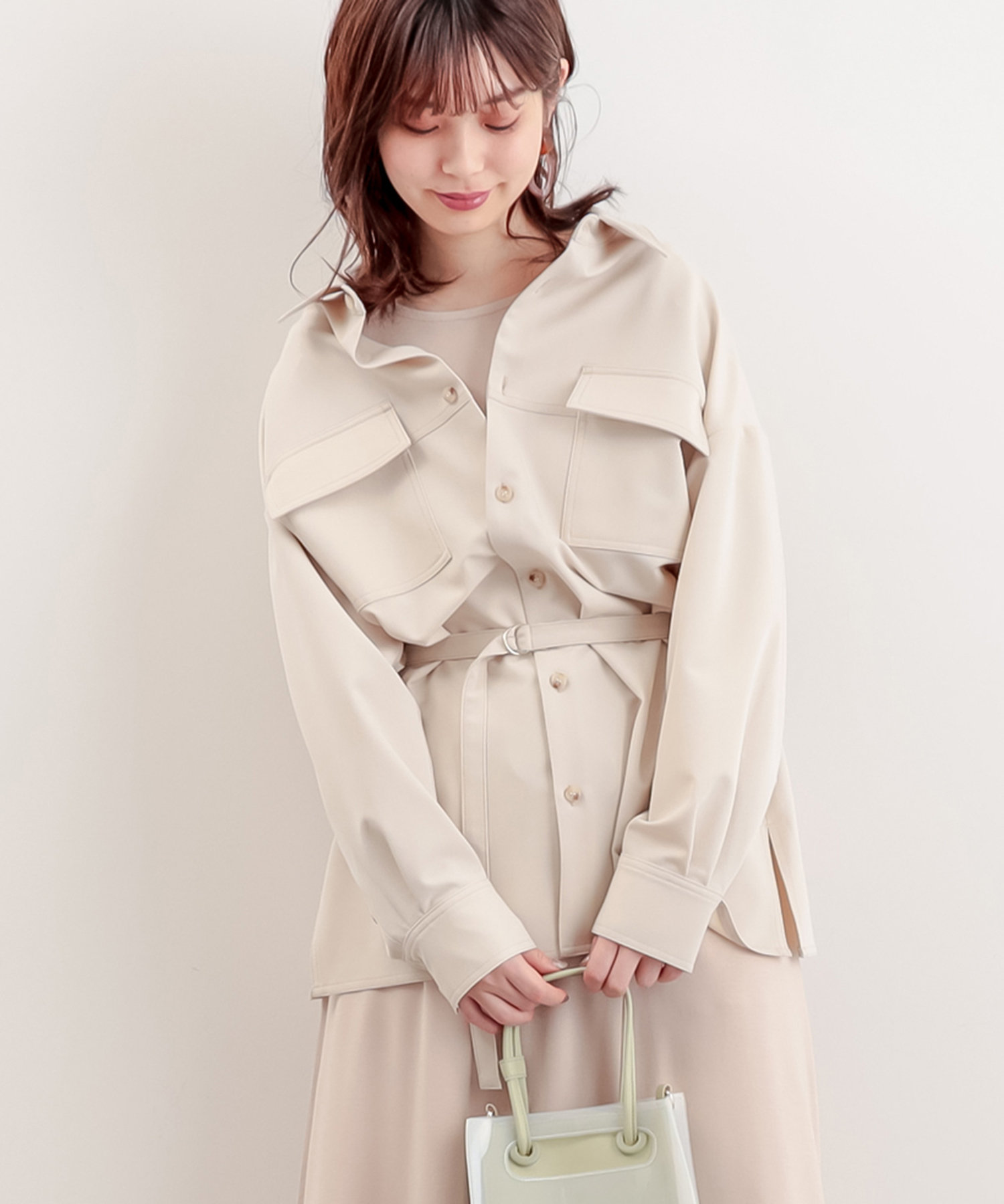 また、付属のベルトを使ってウエストマークをすれば違った雰囲気にも変化します。