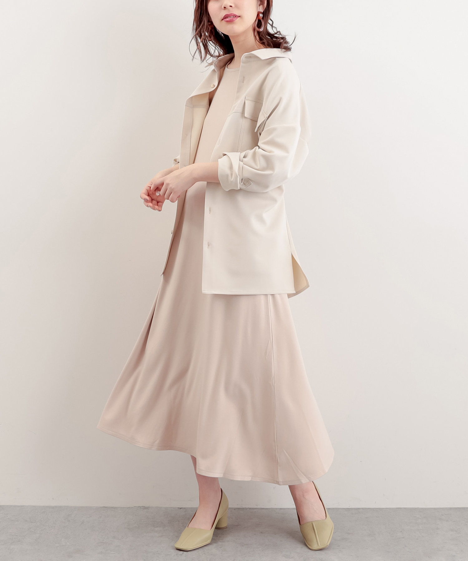 ワンピースの上にさらっと羽織るのはもちろん、ボタンをすべて閉めて1枚着としてもお使い頂けます。