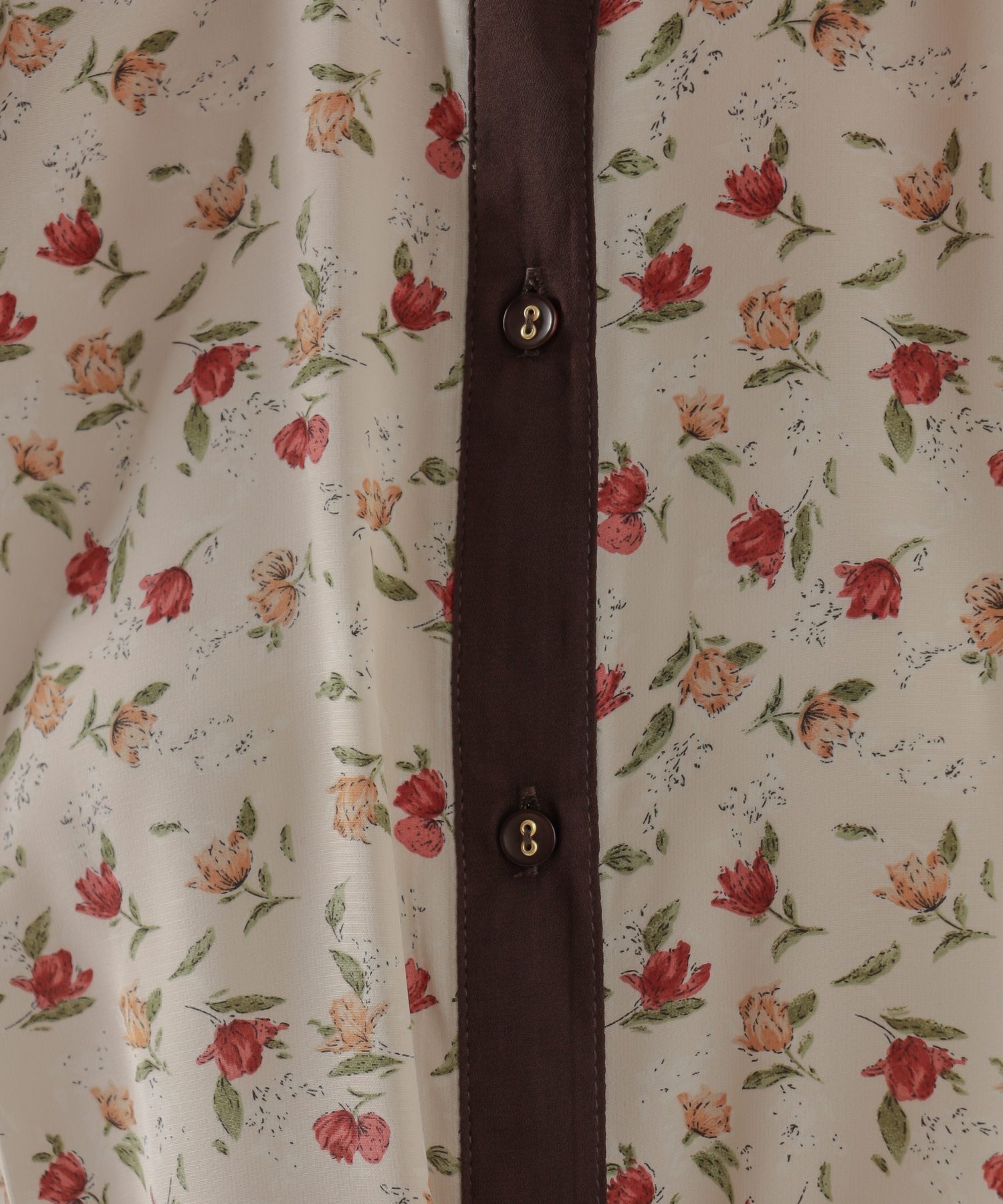 襟元と袖口は配色カラー仕様になっており、花柄を素敵に引き立ててくれます。