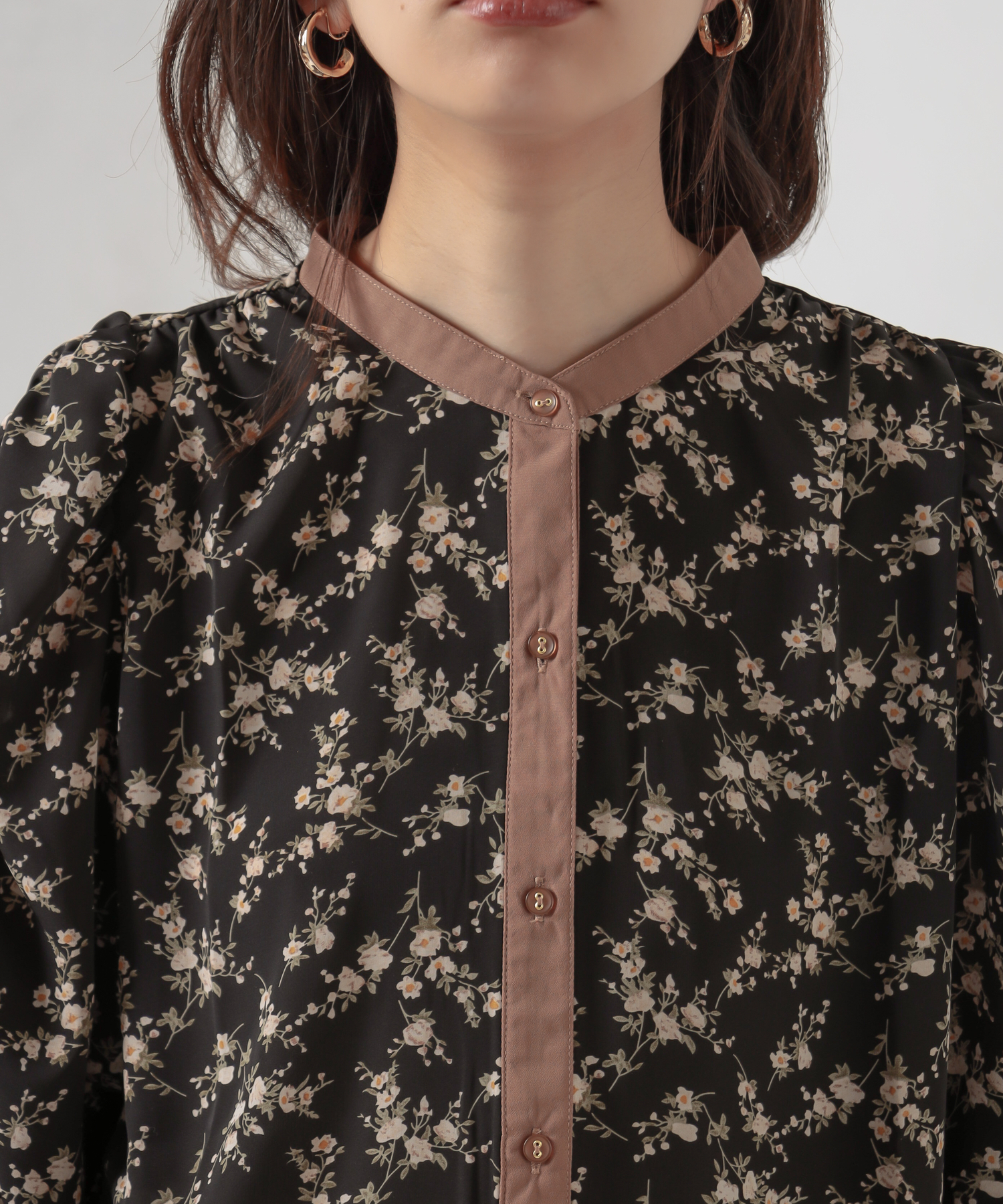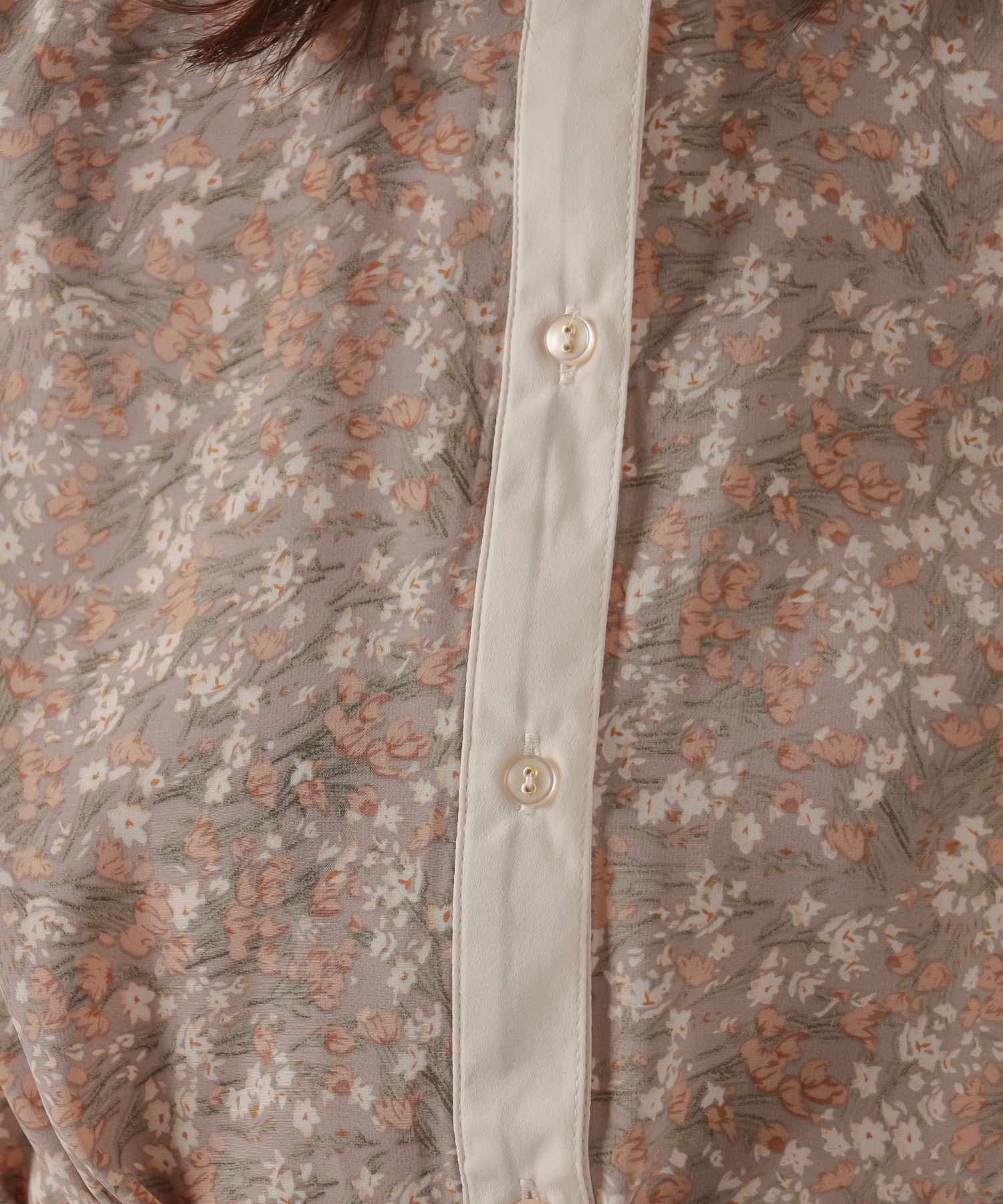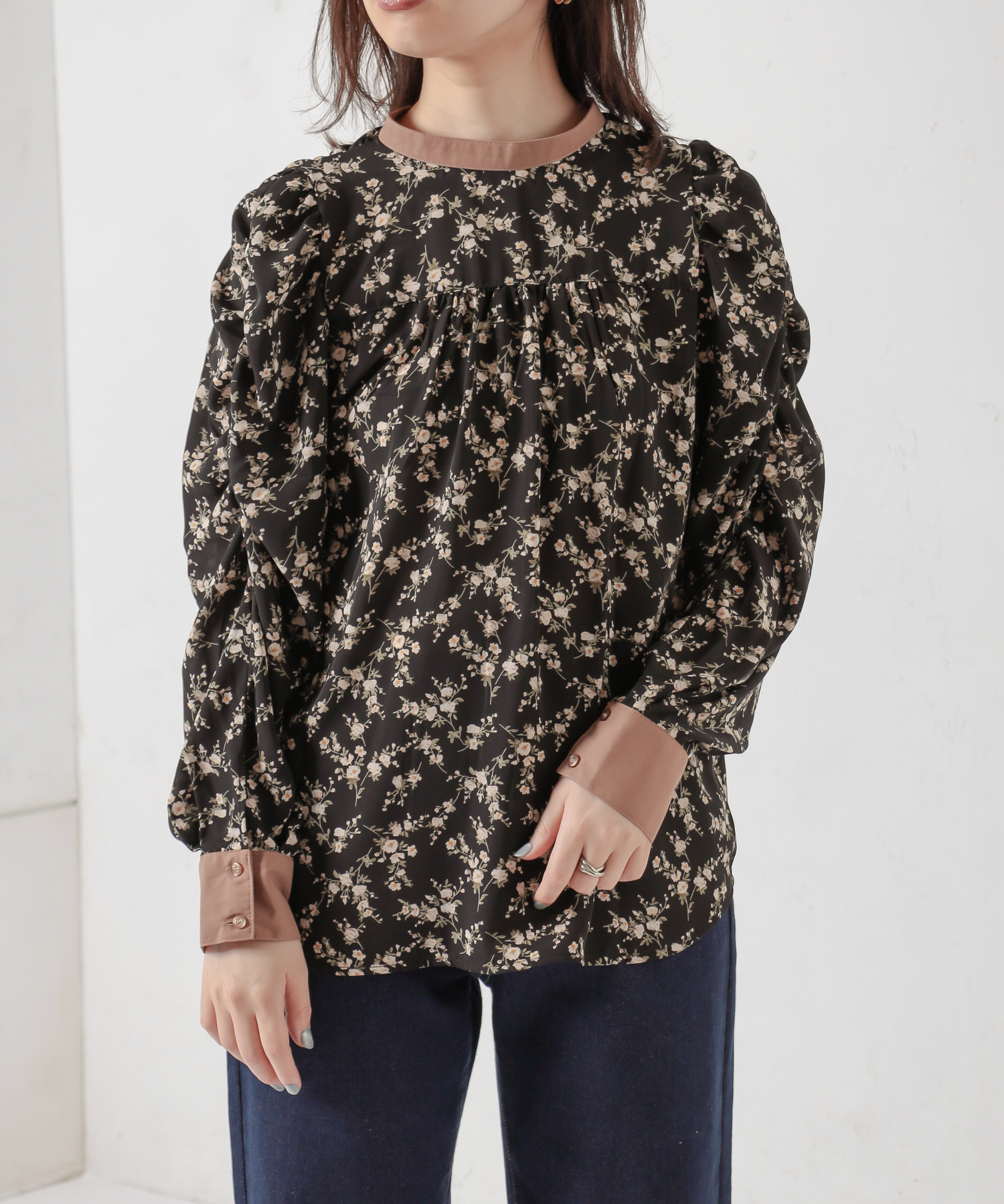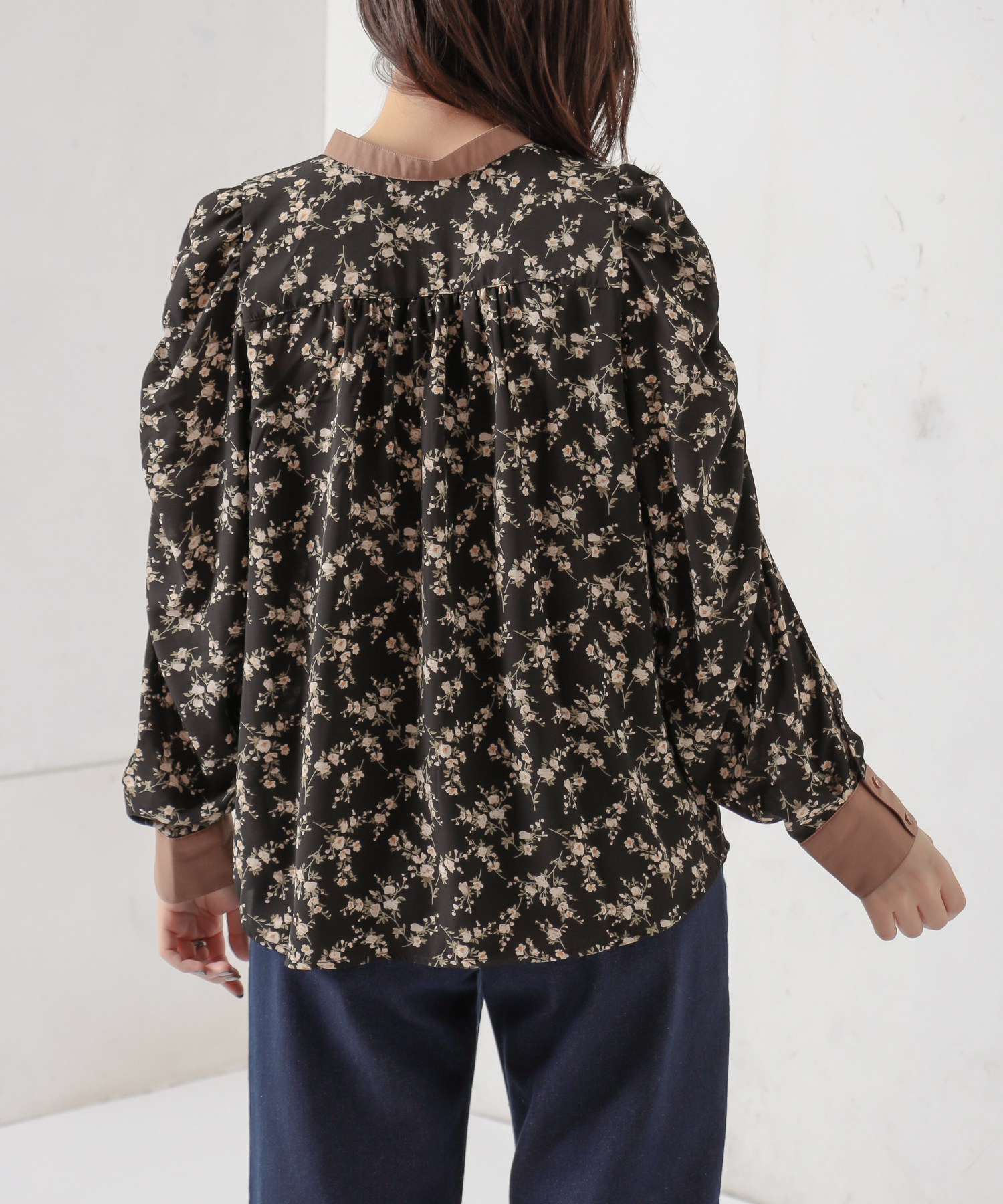 【WEB限定カラー有り】2WAYギャザーパフ配色花柄ブラウス
