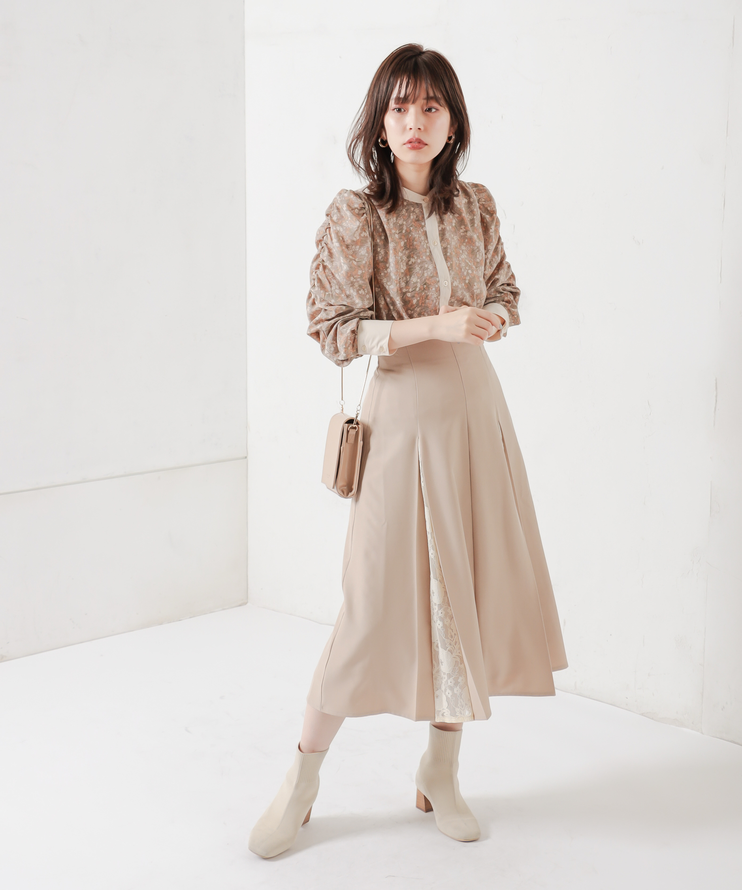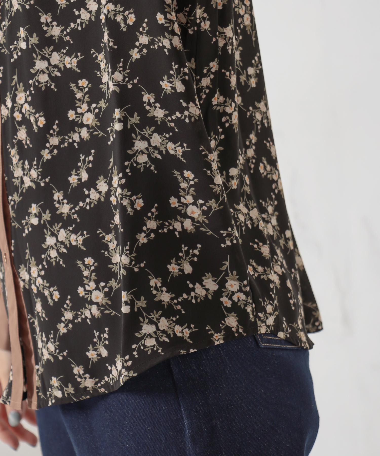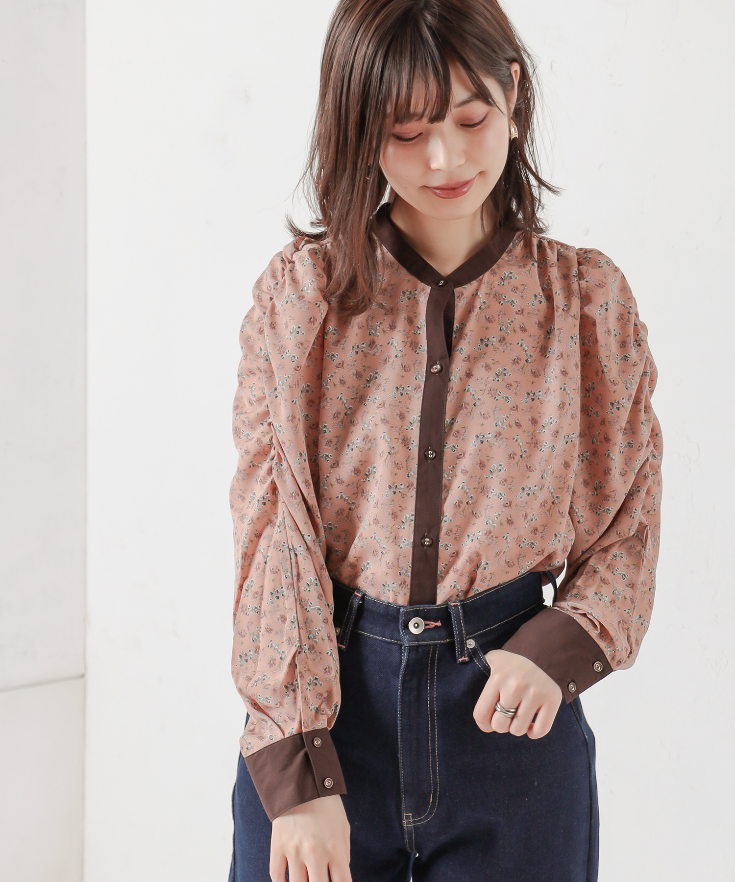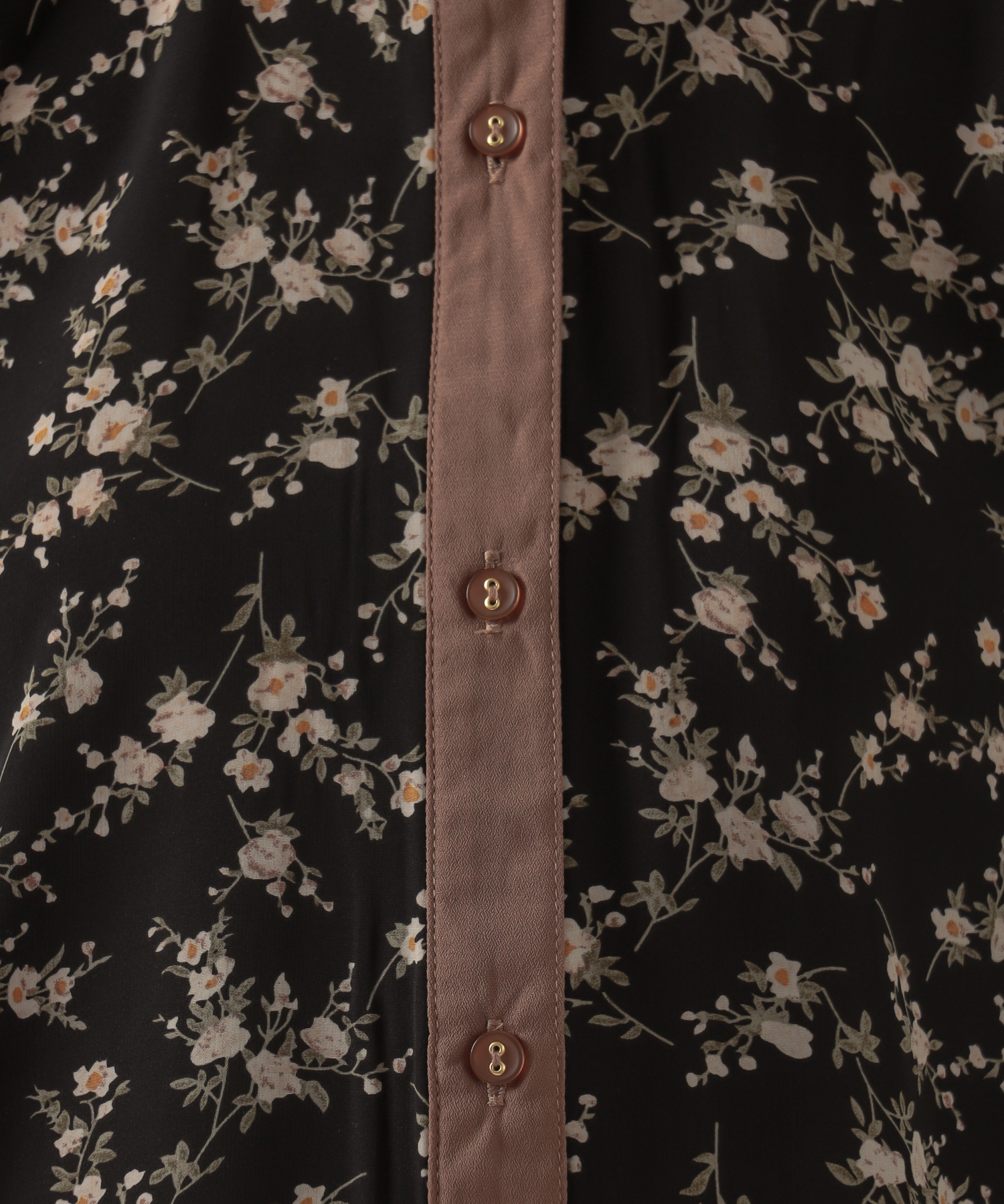 【WEB限定カラー有り】2WAYギャザーパフ配色花柄ブラウス