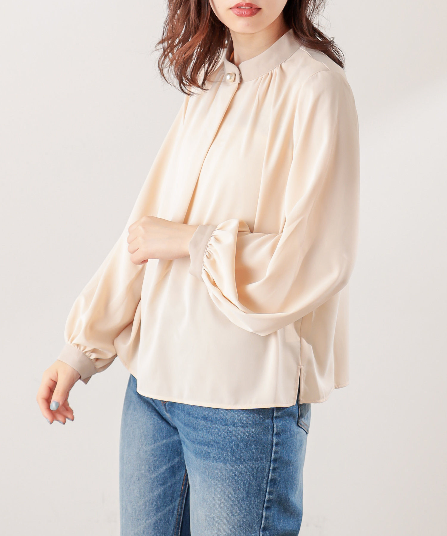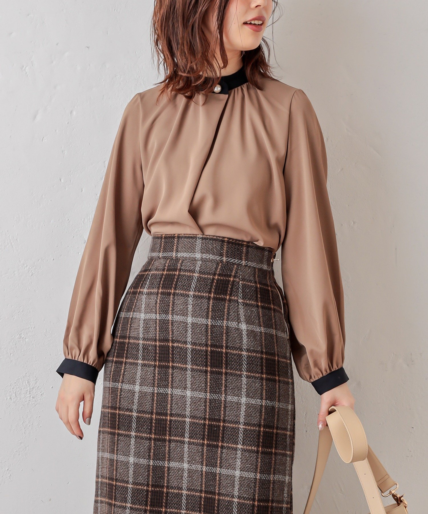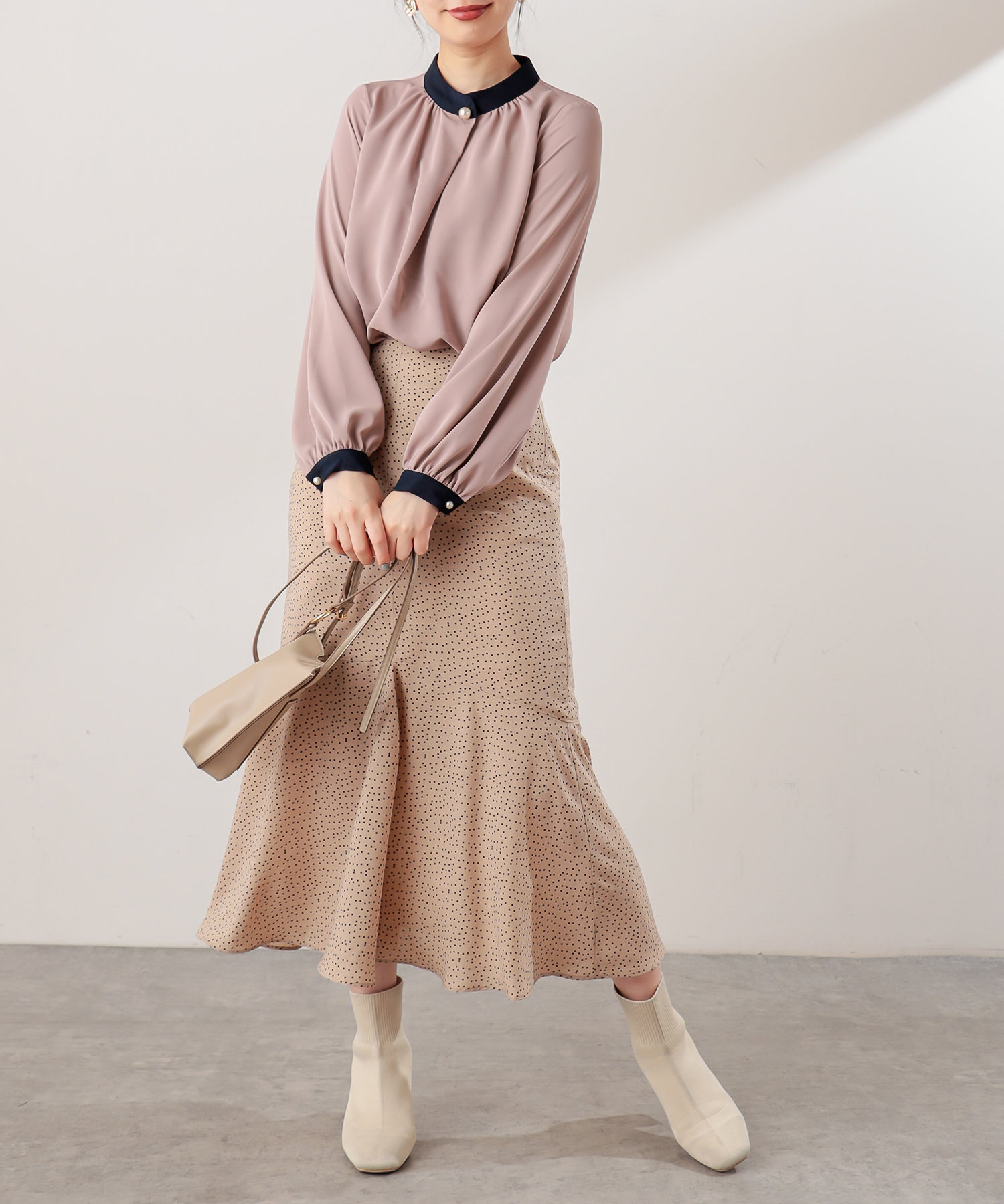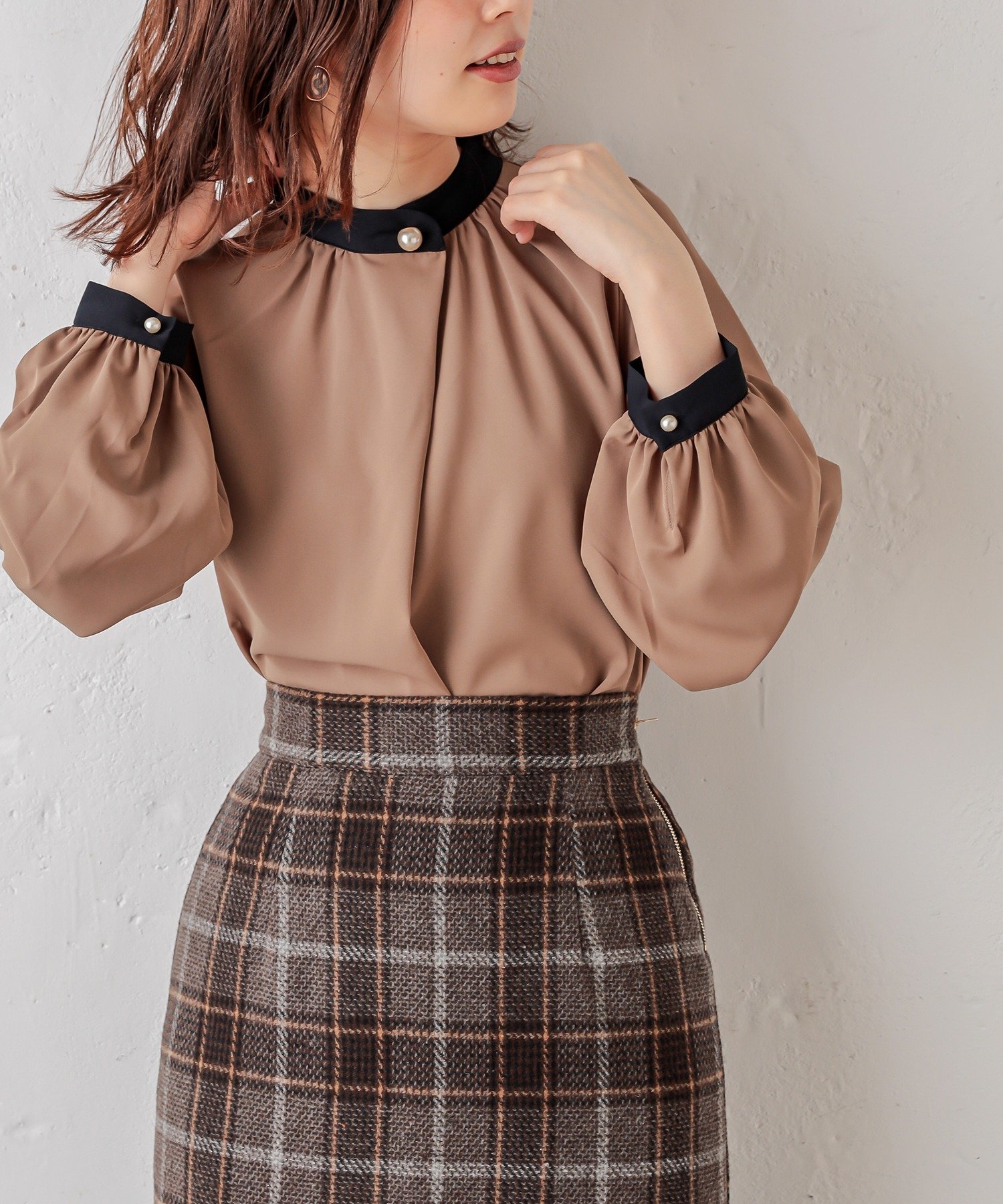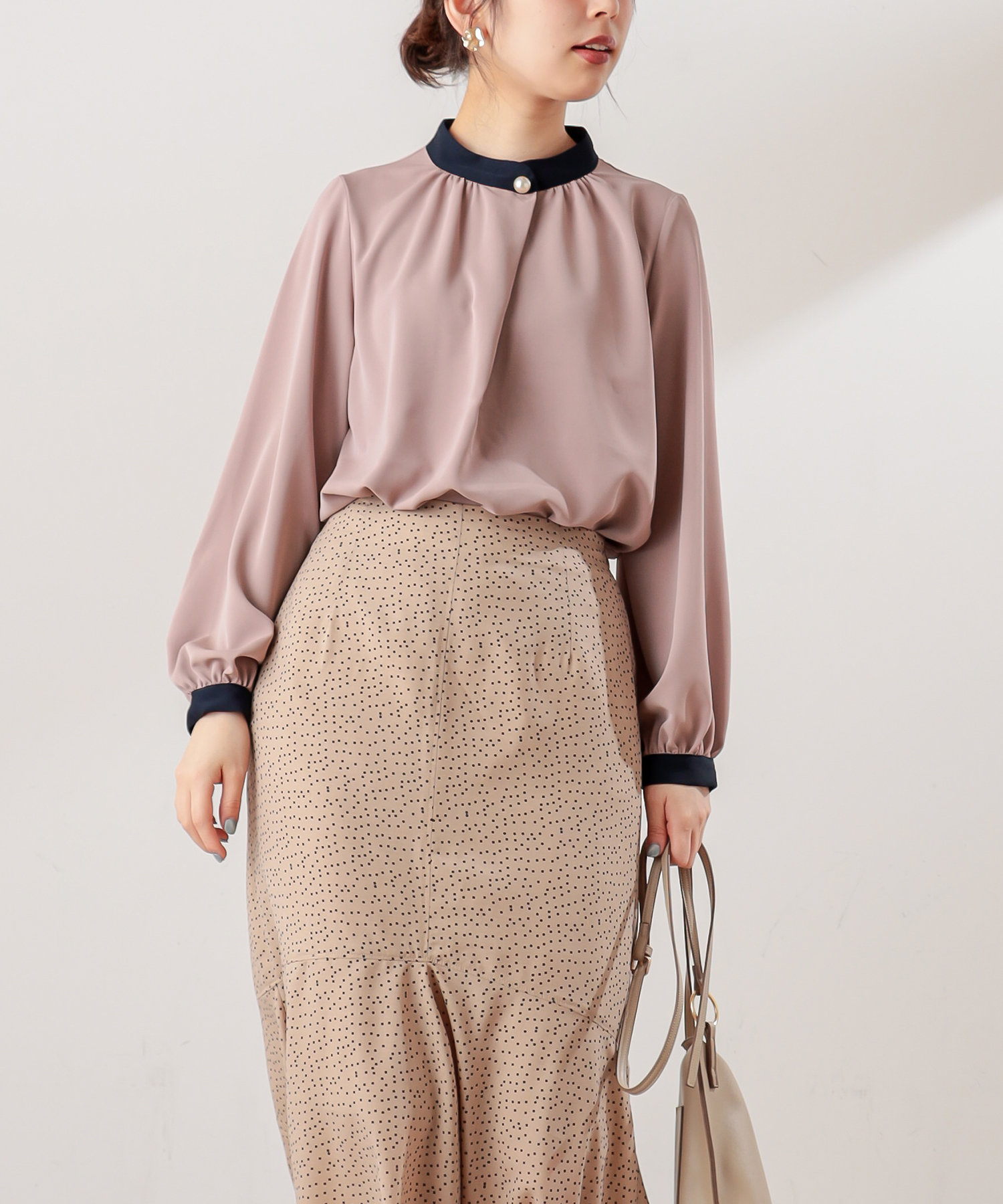 【WEB限定カラー有り】プチプラパールポイントバイカラーブラウス