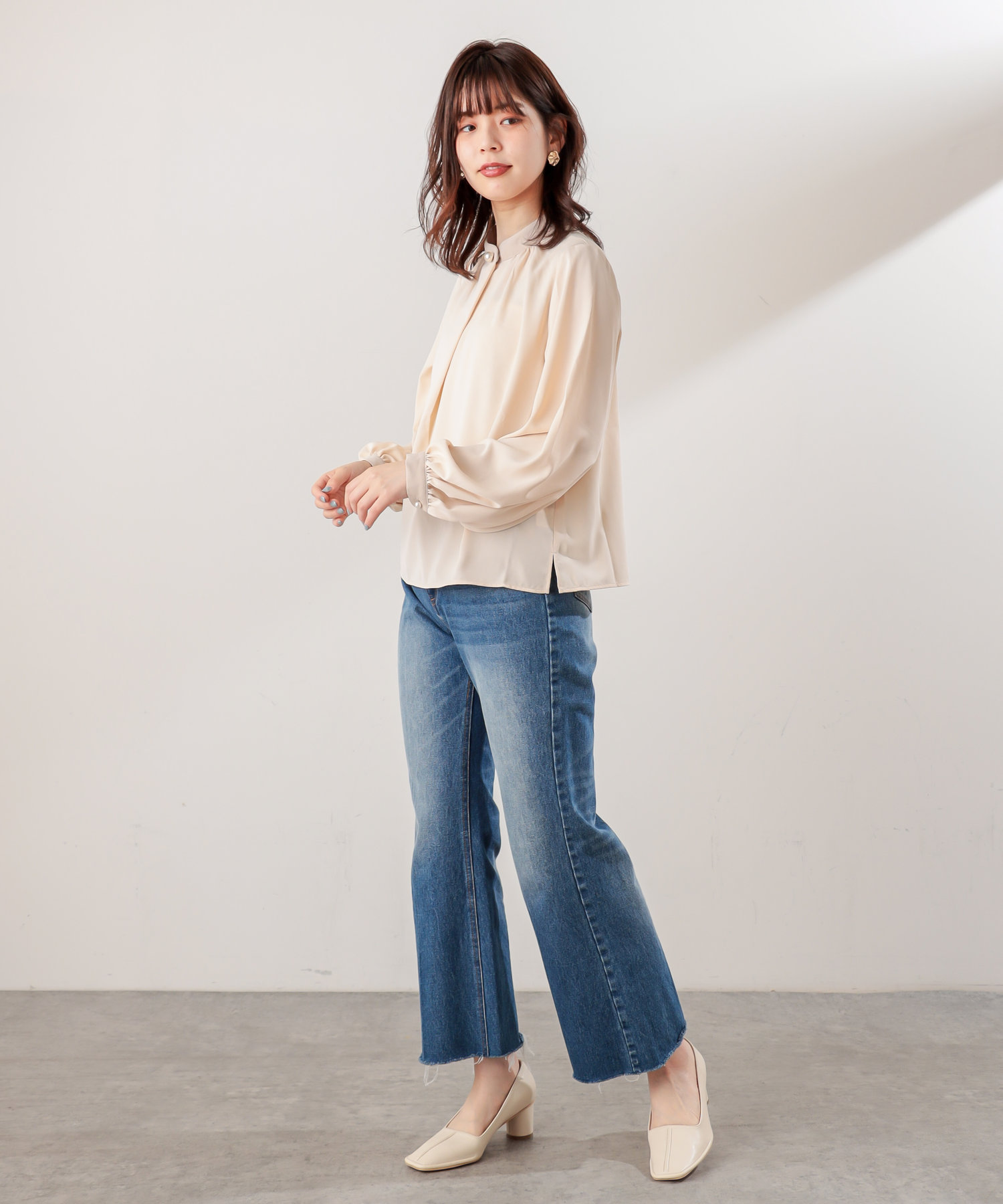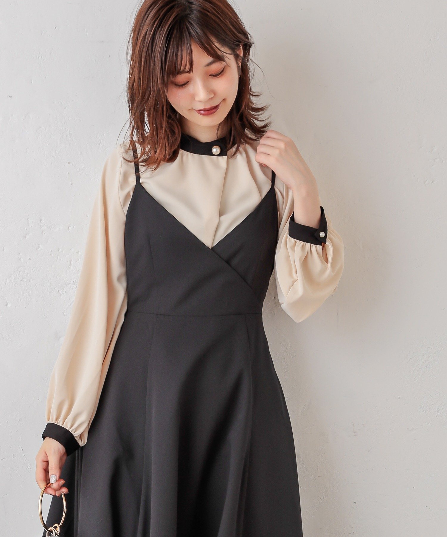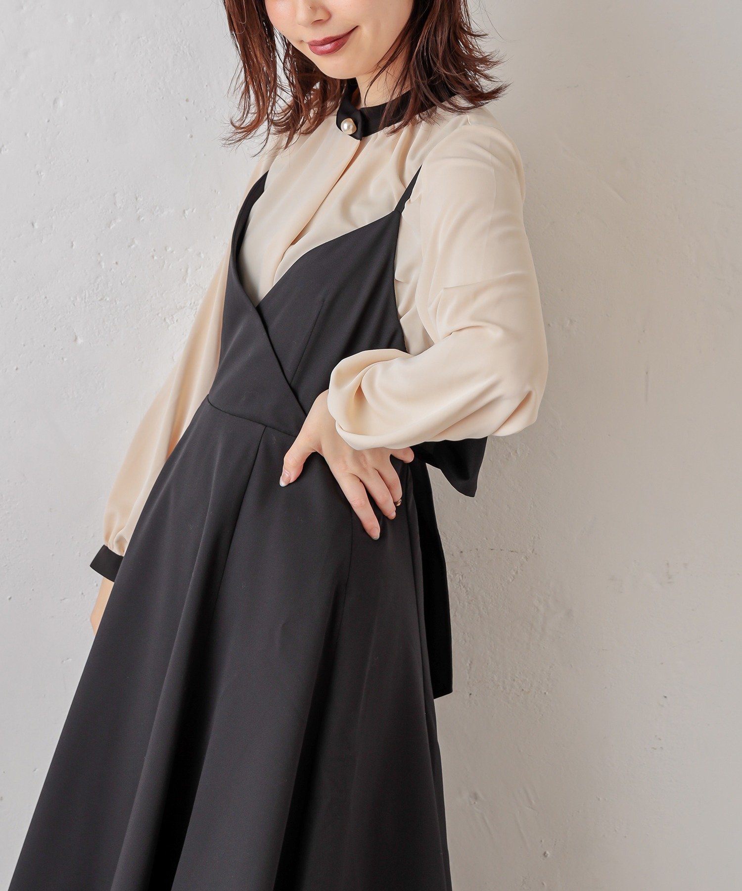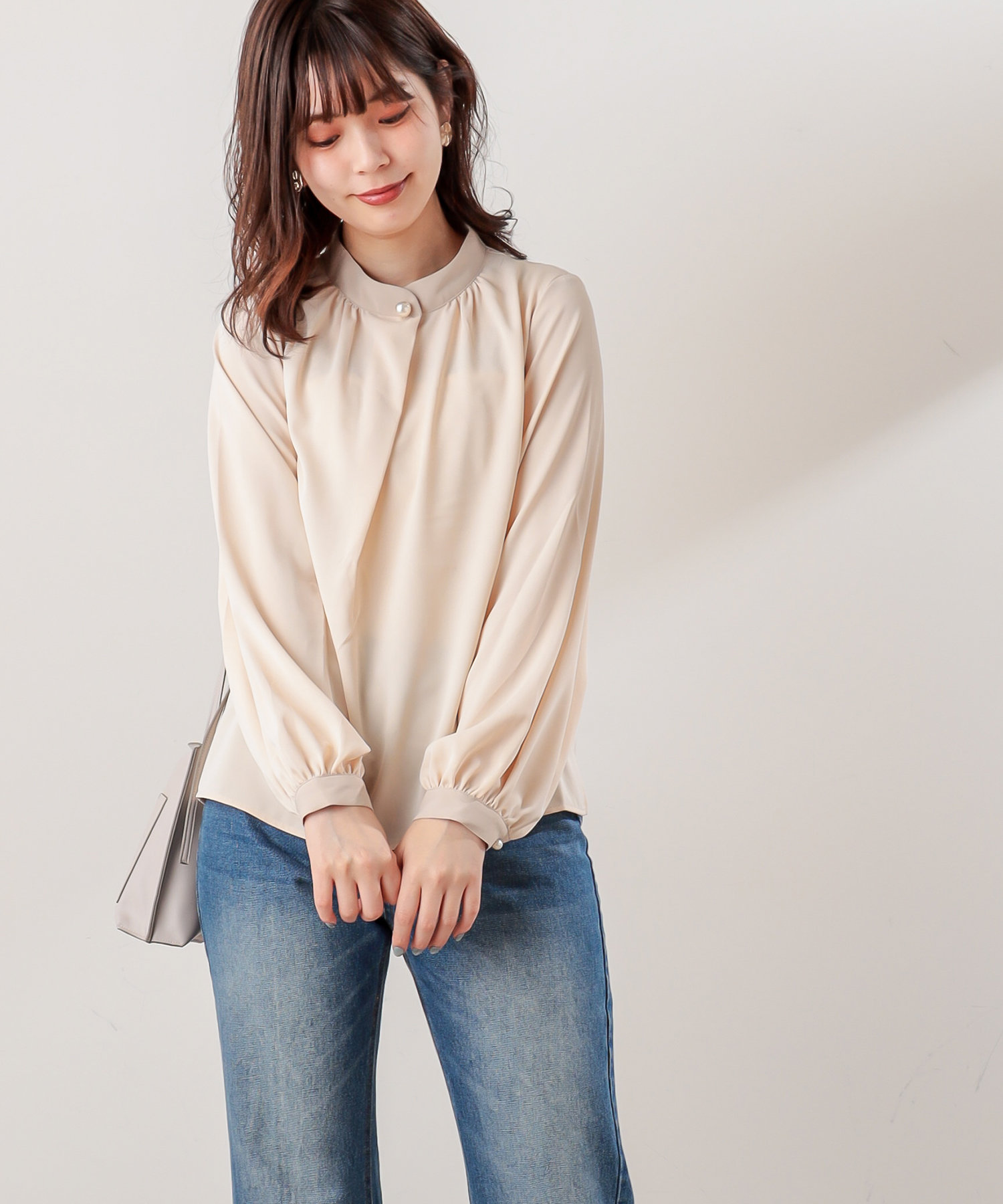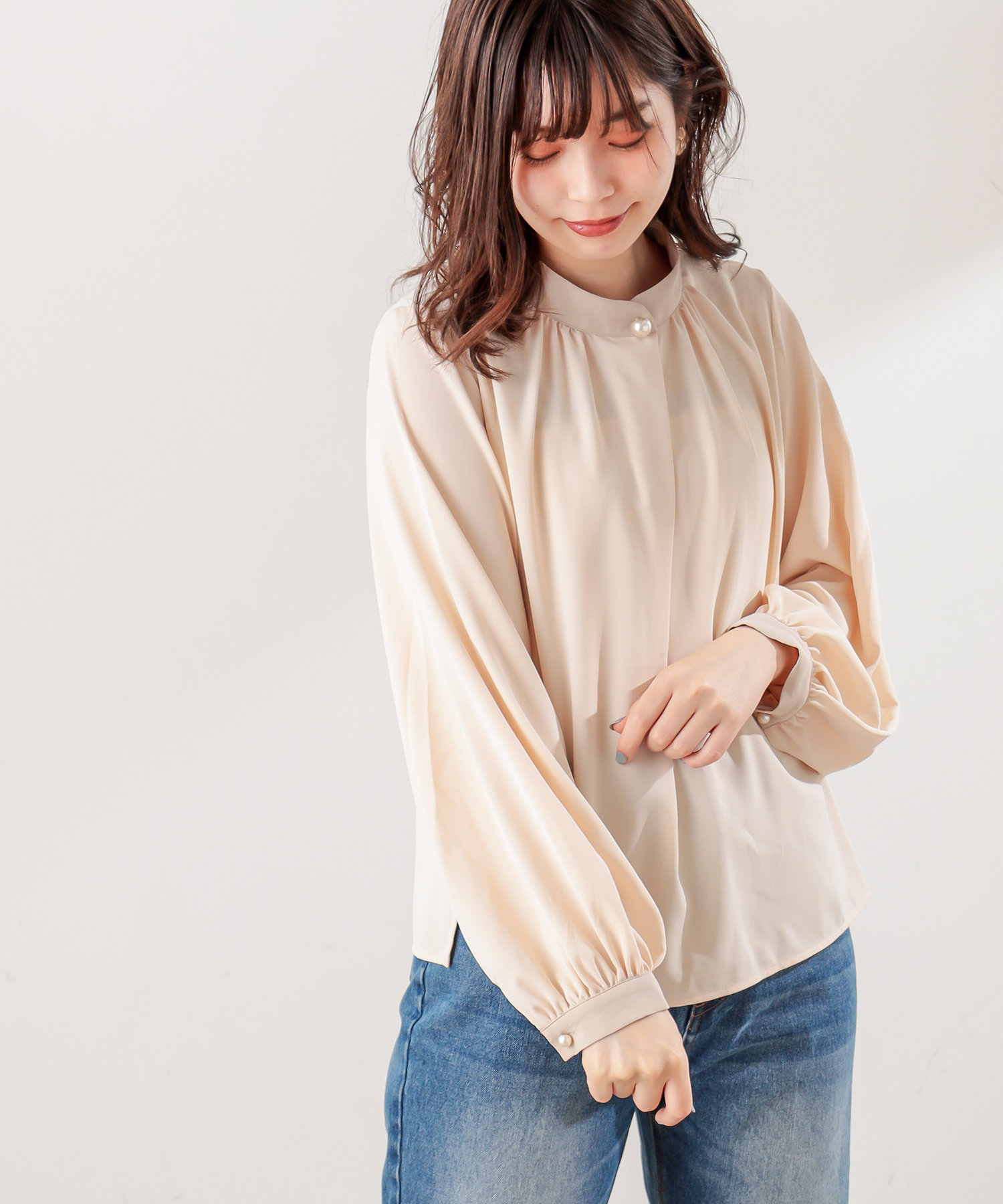 【WEB限定カラー有り】プチプラパールポイントバイカラーブラウス