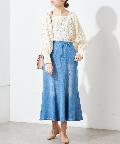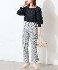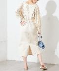 デザイン性のあるブラウスなので、ボトムはシンプルなものを