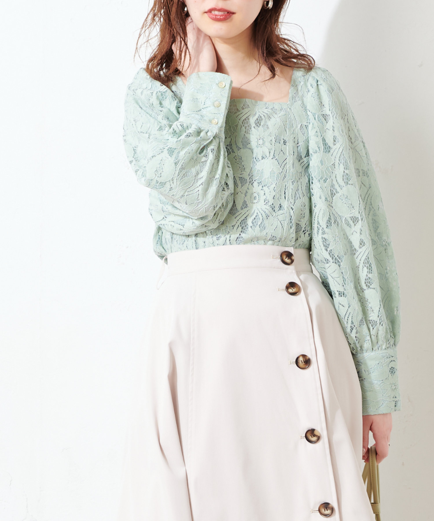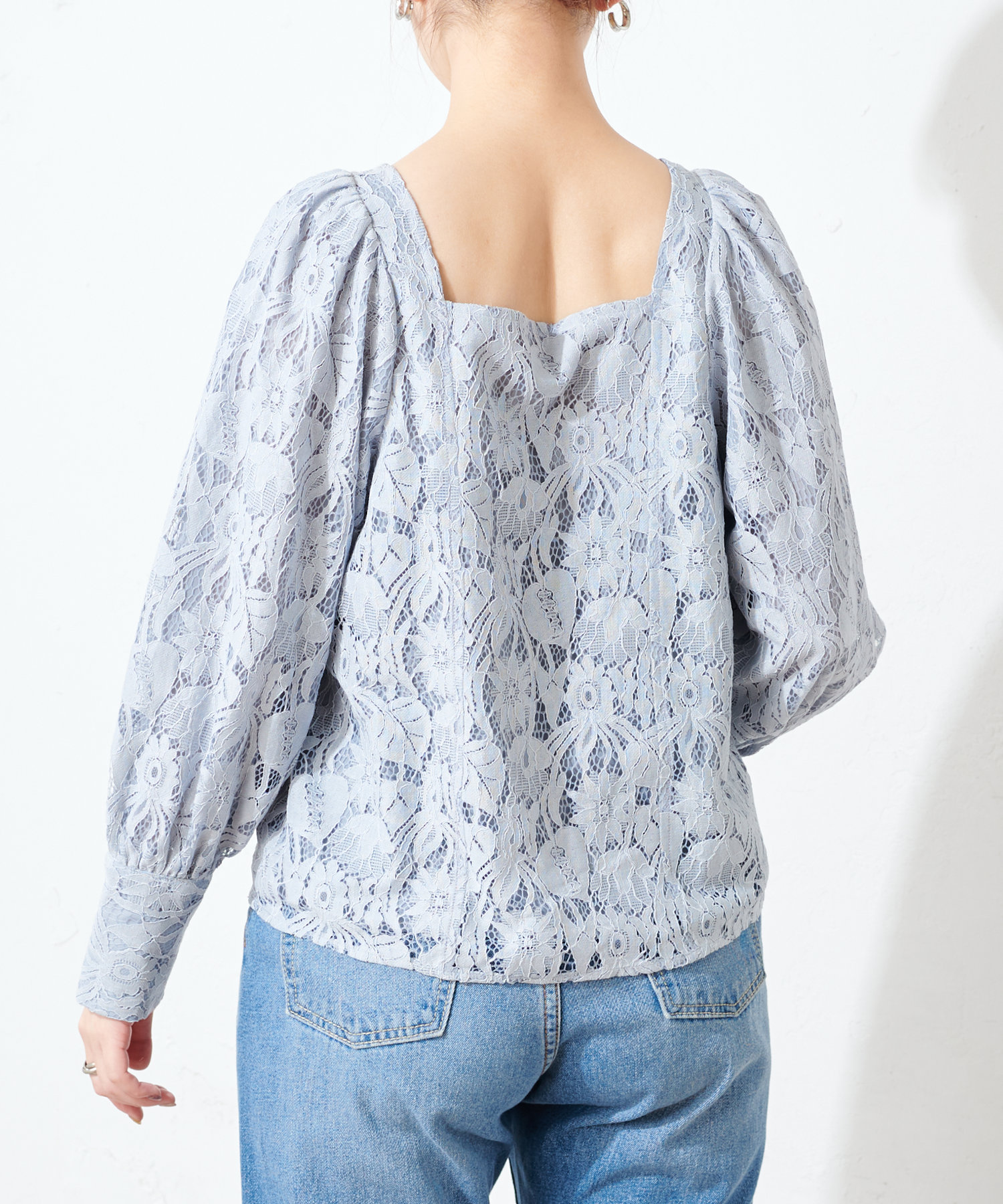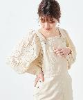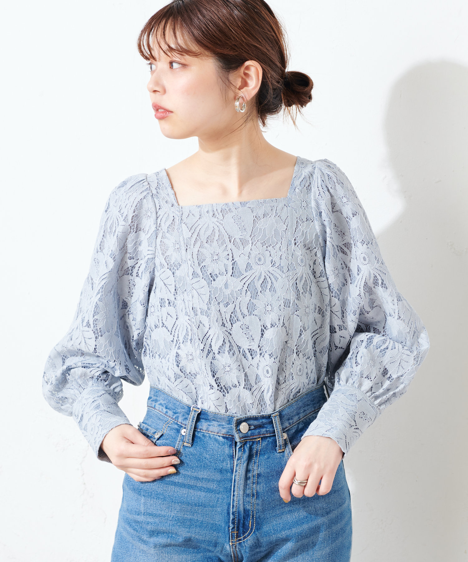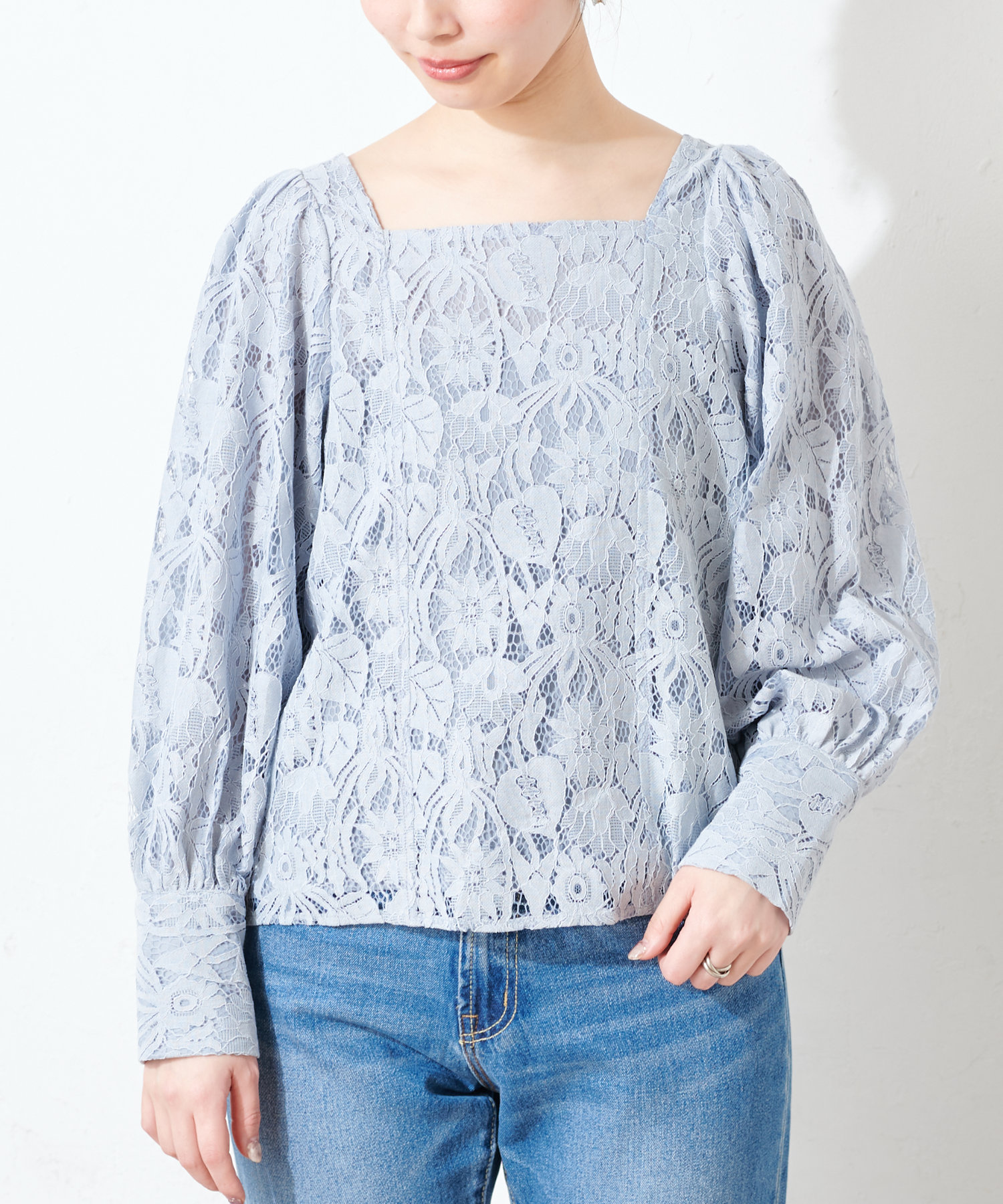 • natural couture(ナチュラルクチュール) スクエアネックボリュームスリーブレースブラウス