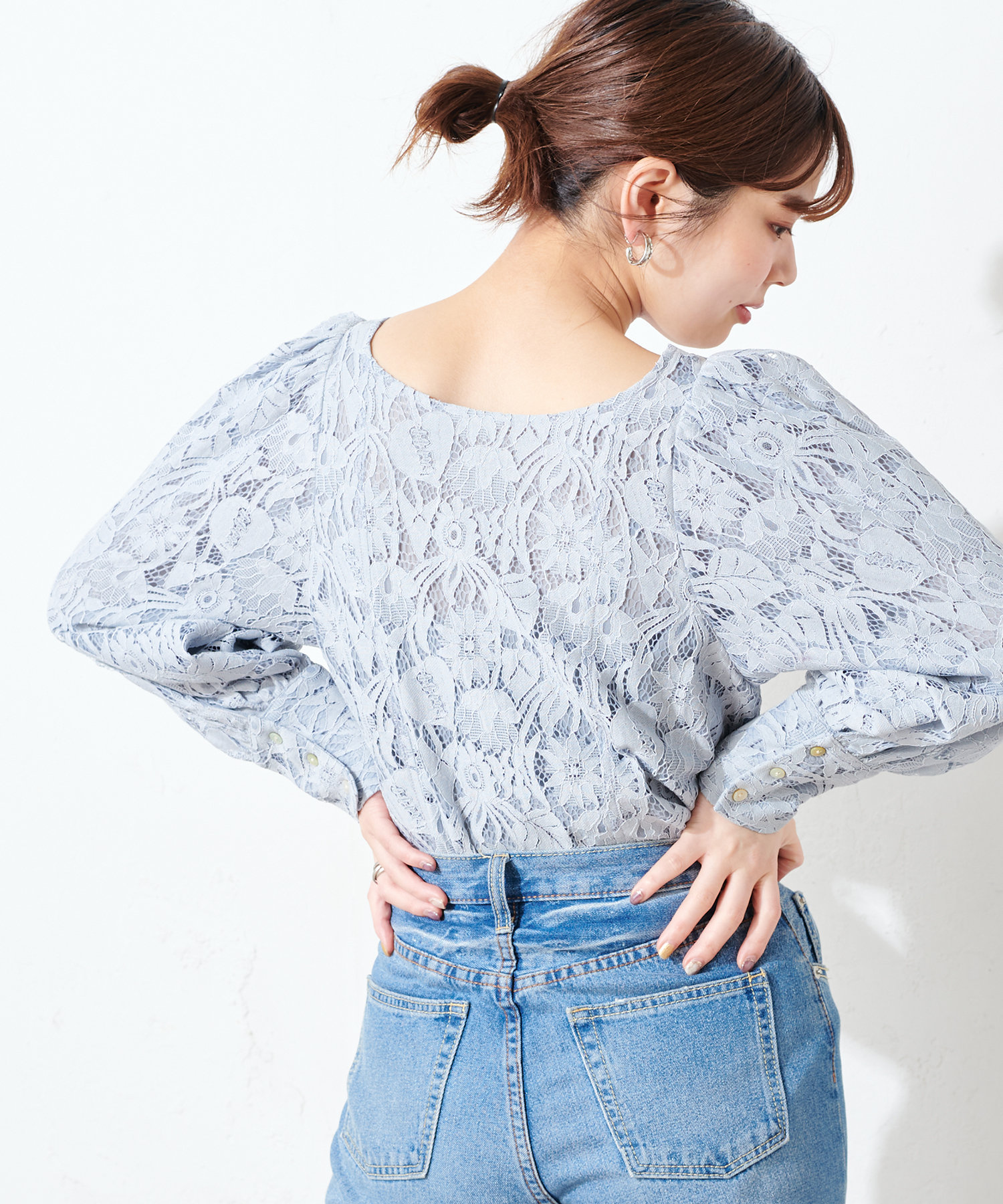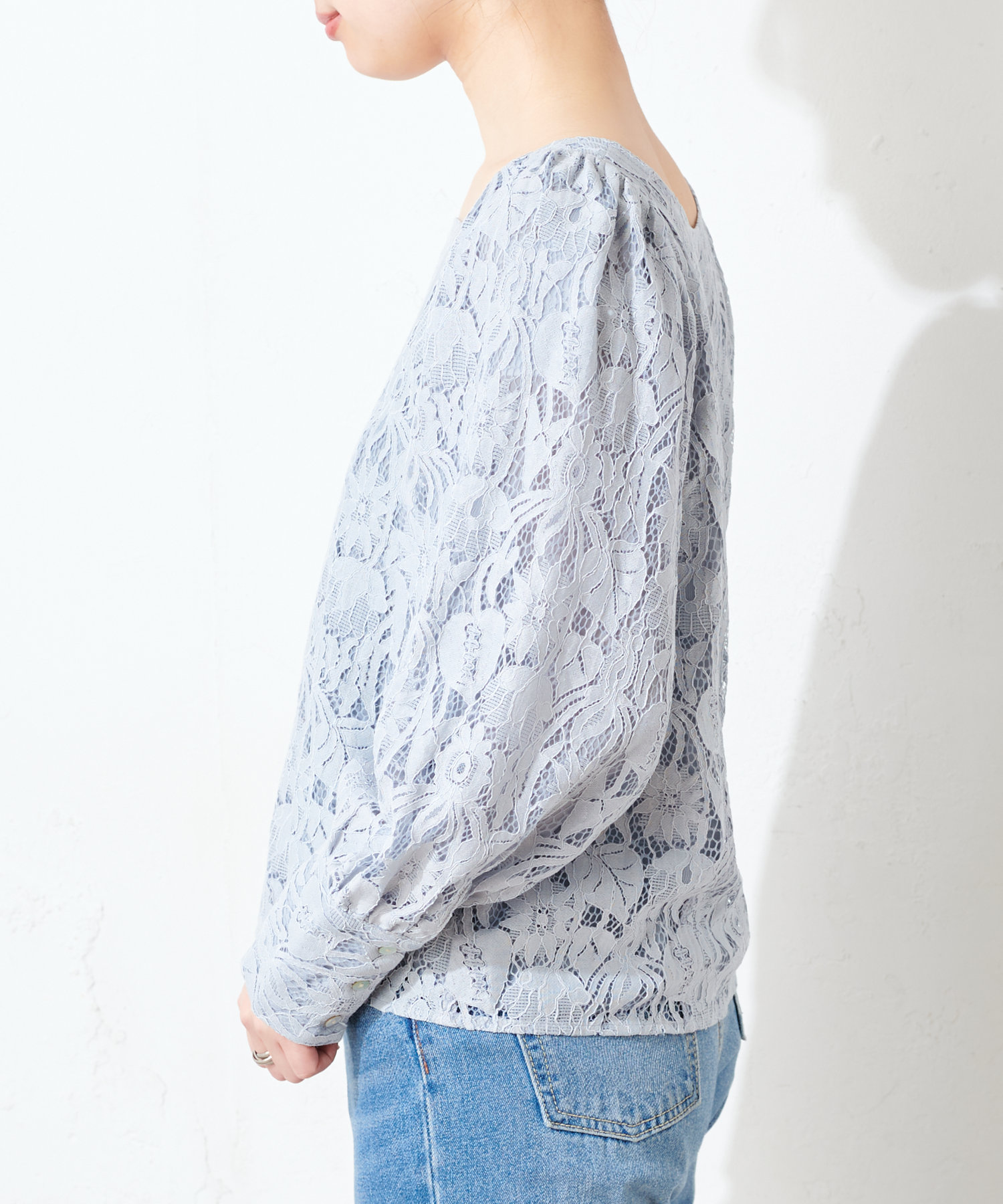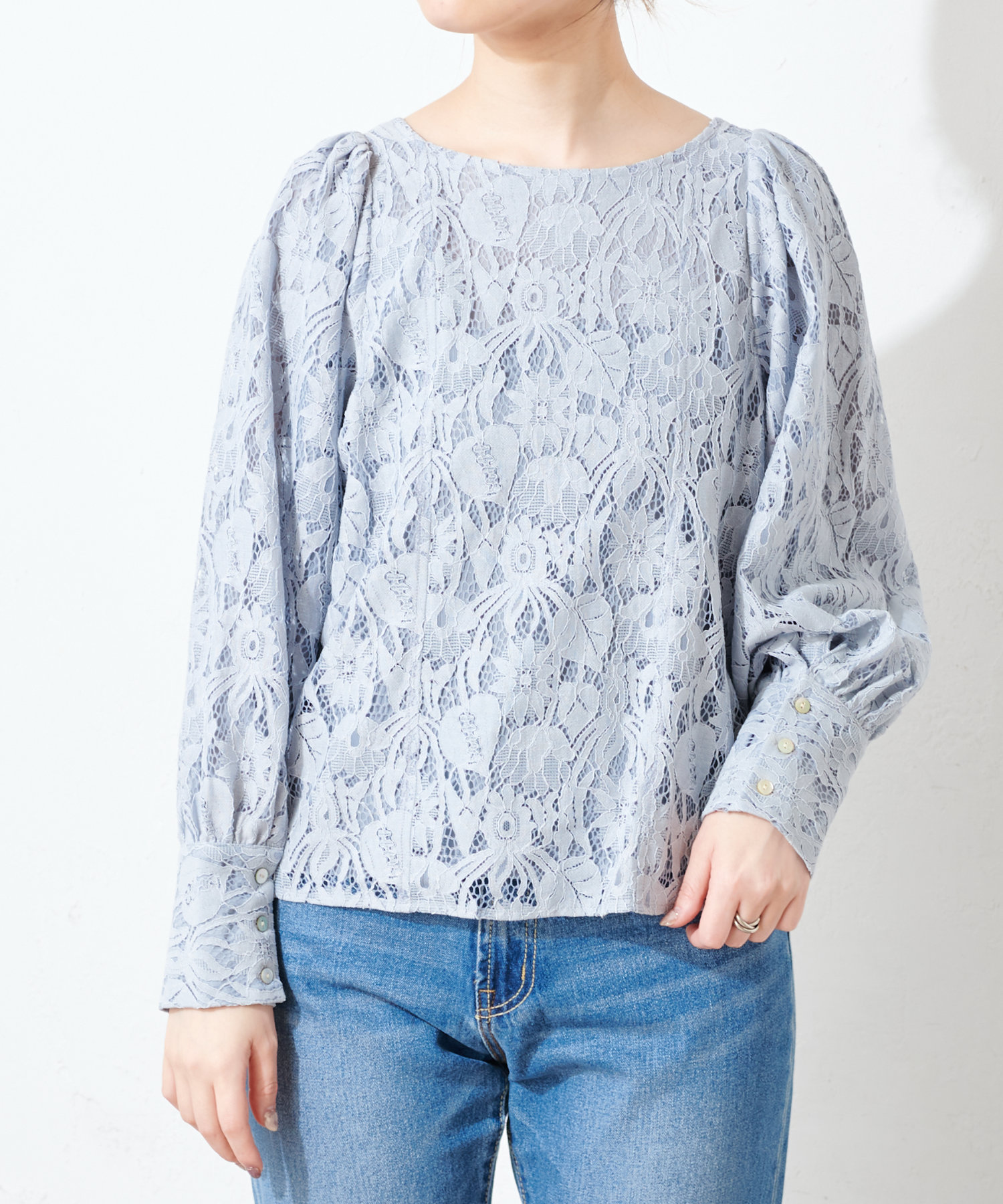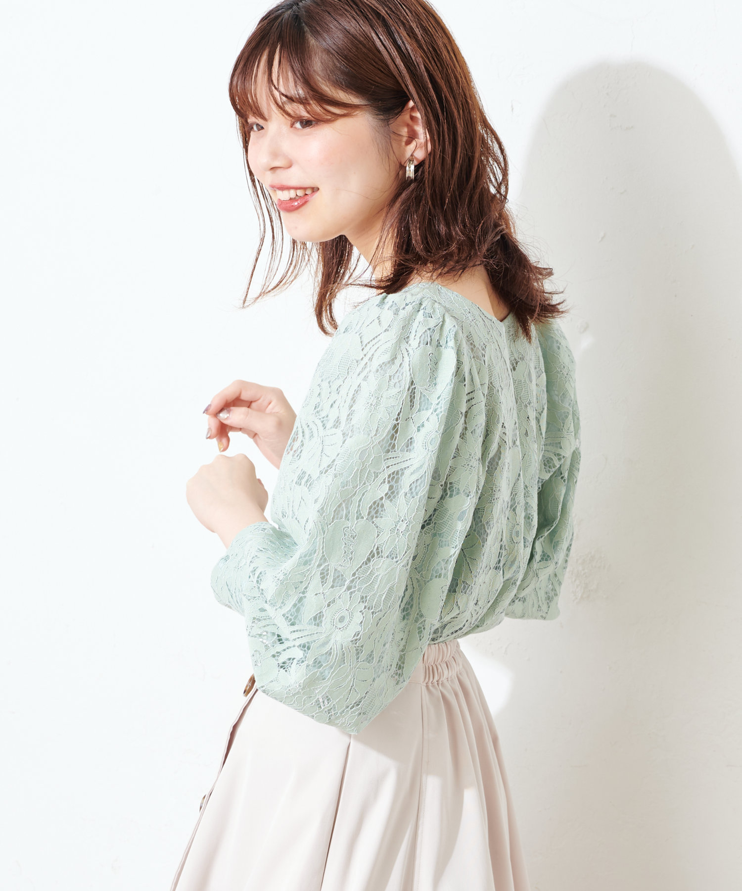 • natural couture(ナチュラルクチュール) スクエアネックボリュームスリーブレースブラウス