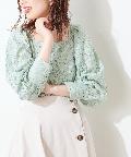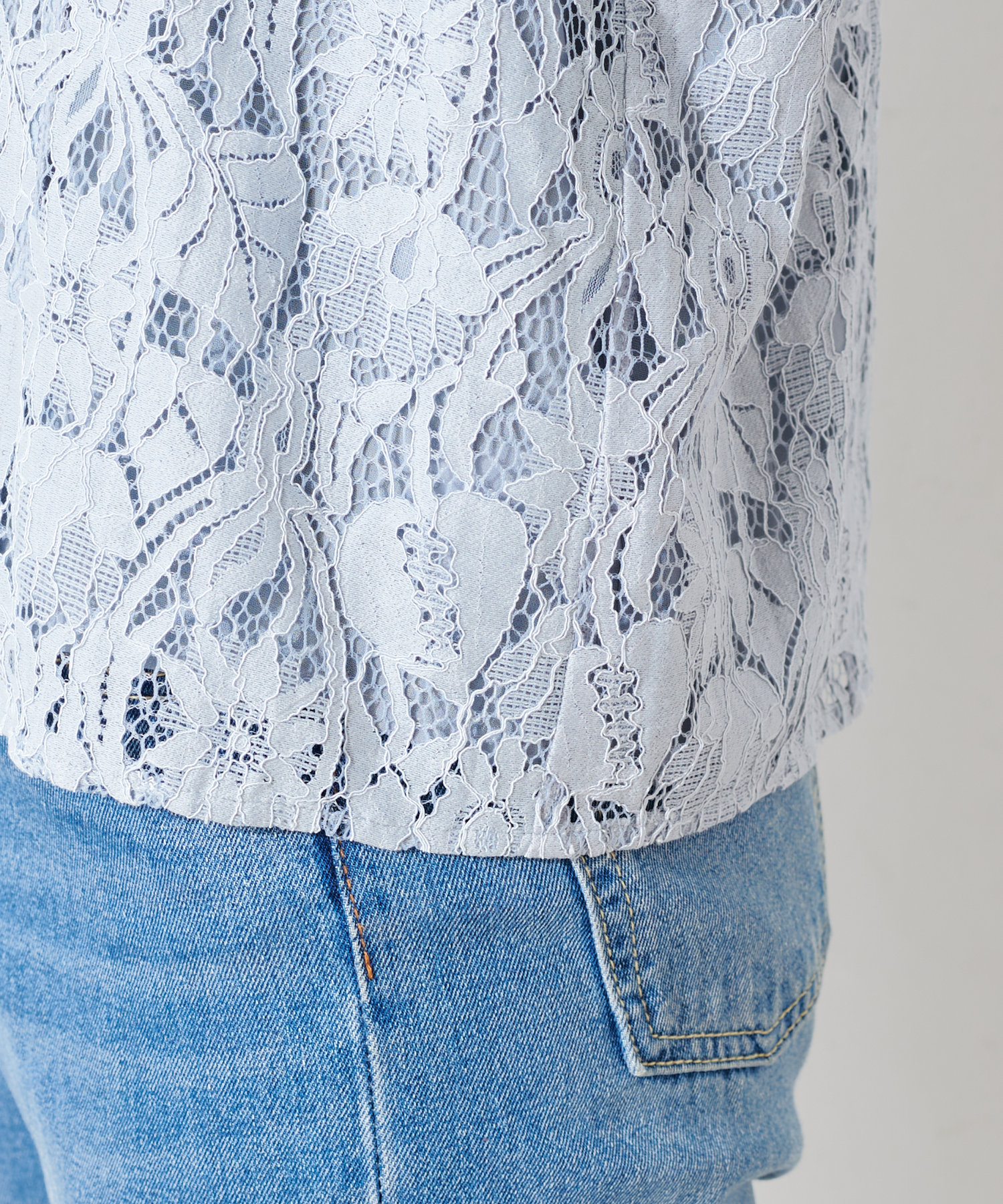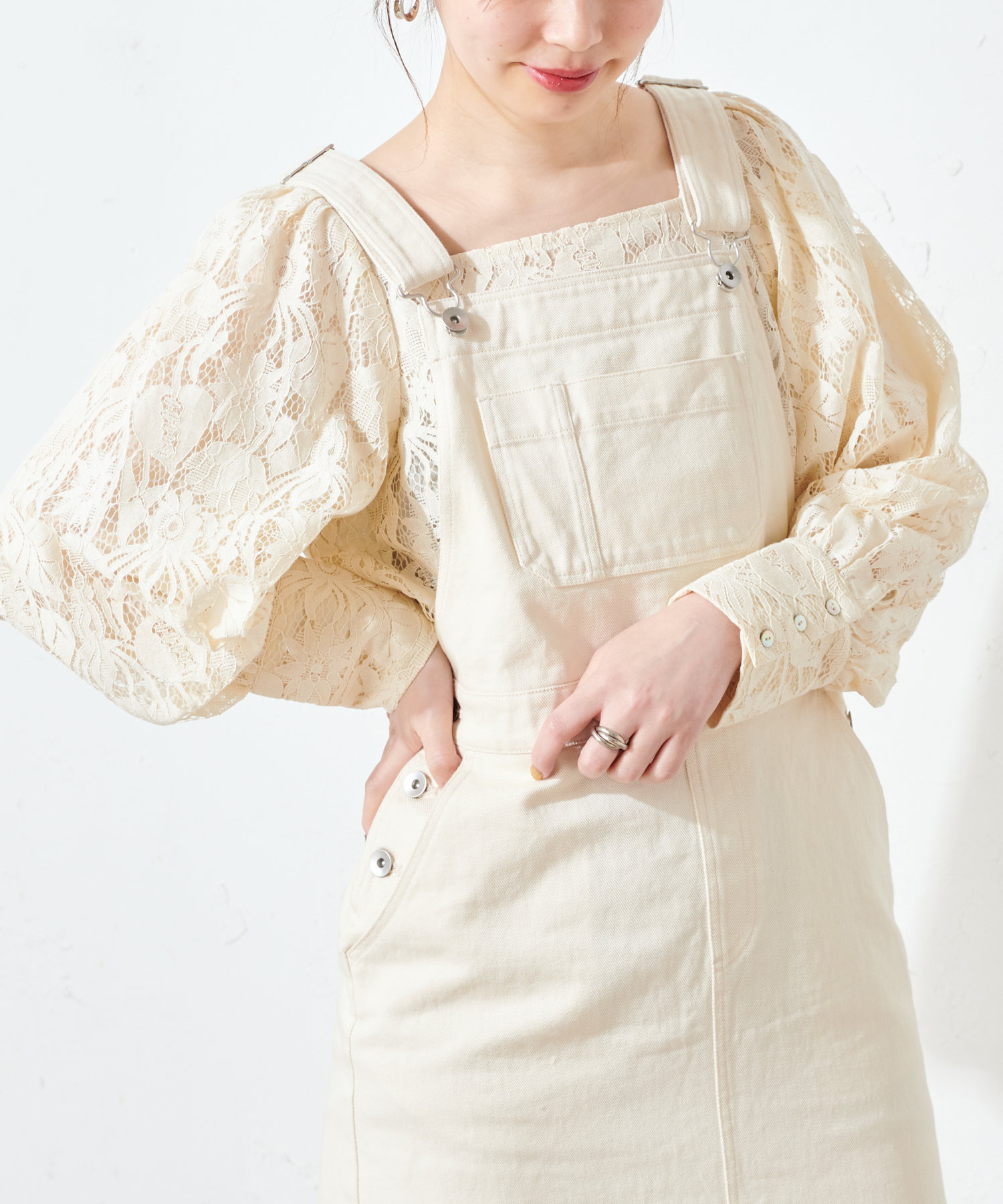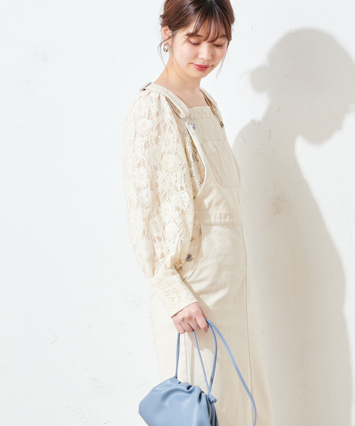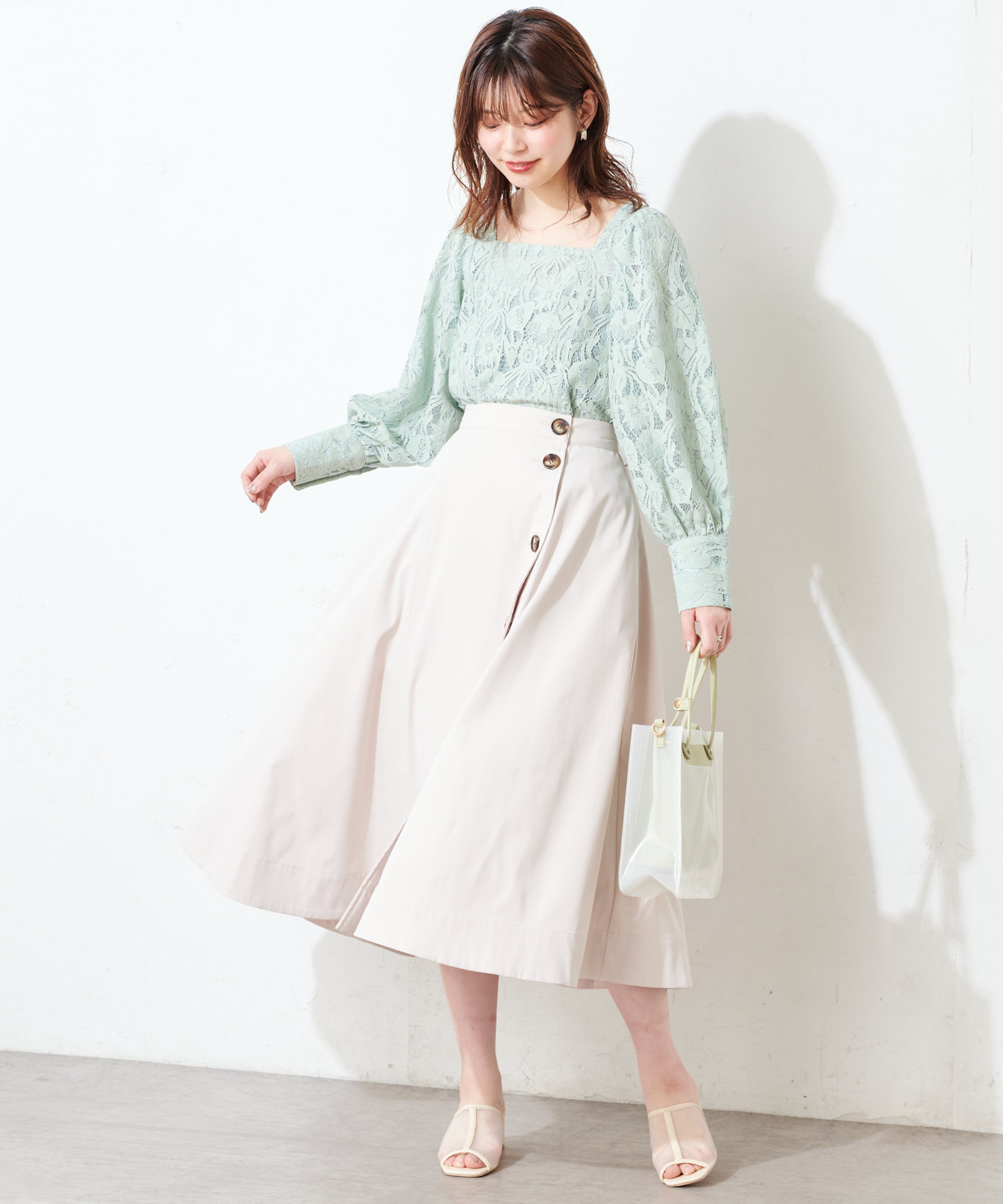 • natural couture(ナチュラルクチュール) スクエアネックボリュームスリーブレースブラウス