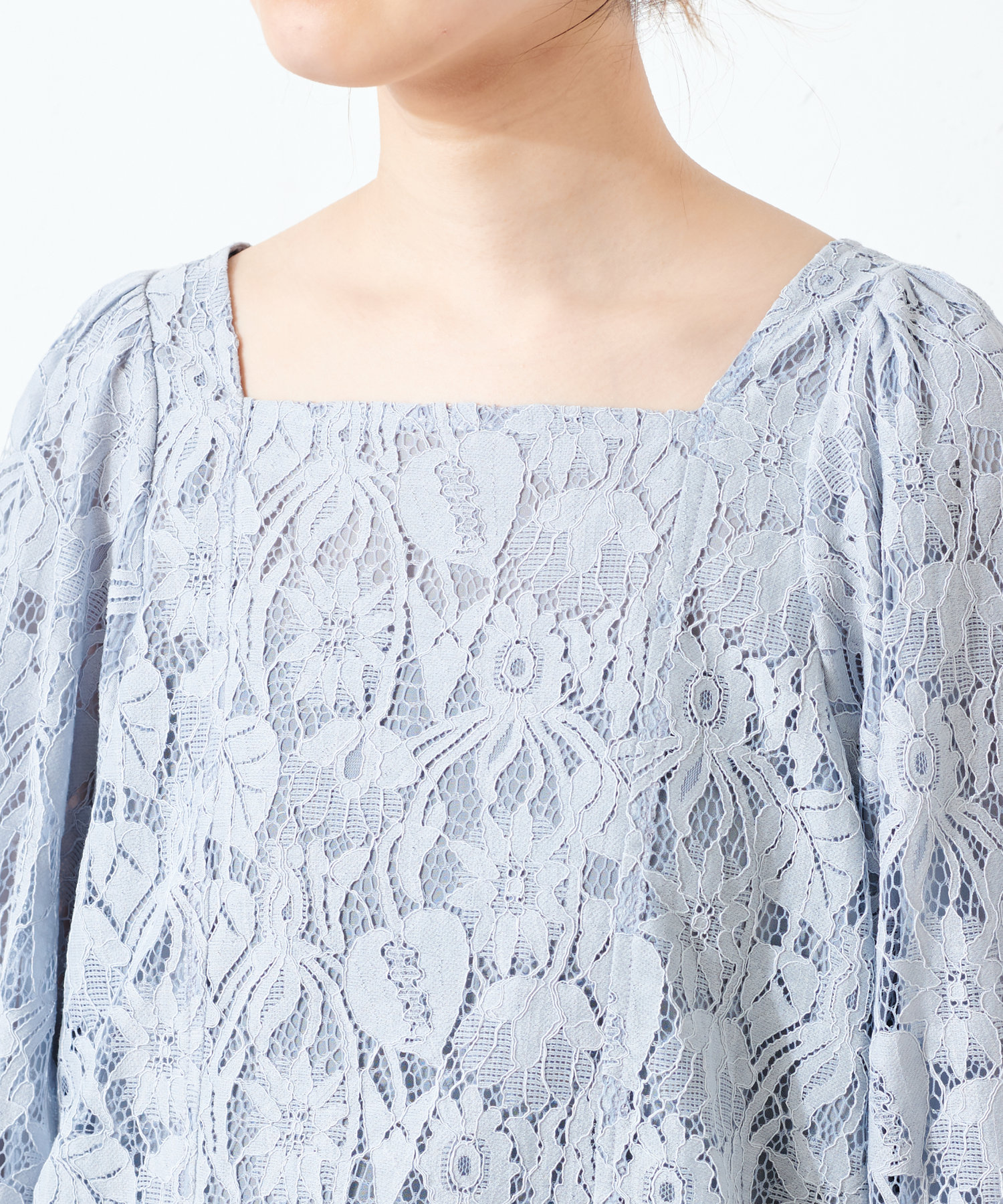 natural couture(ナチュラルクチュール) スクエアネックボリュームスリーブレースブラウス