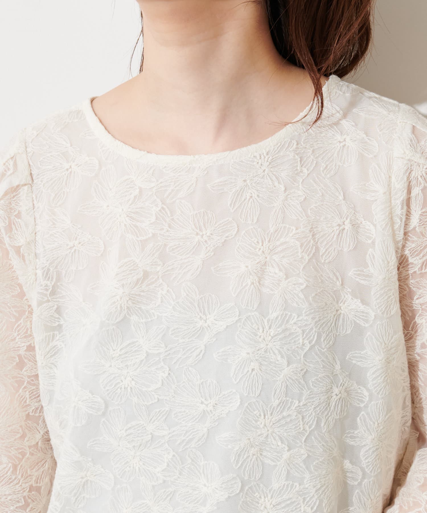 総柄レースのロマンティックムード漂うブラウス