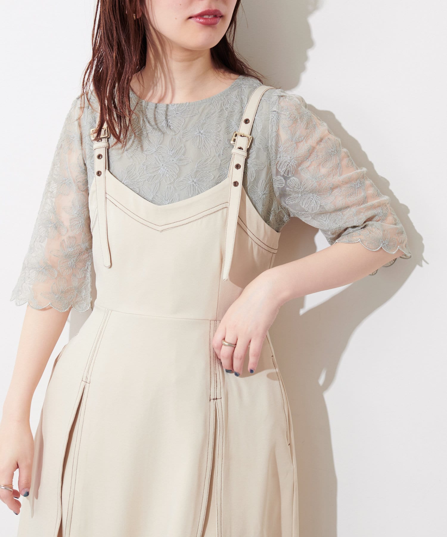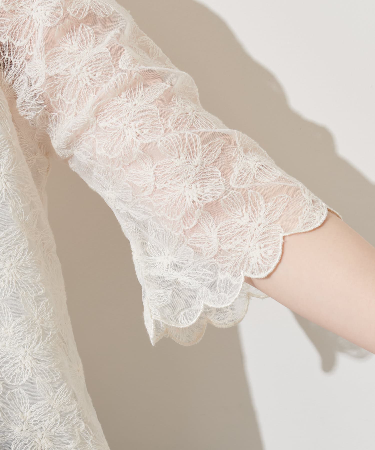 袖口はスカラップデザインでフェミニティな中に